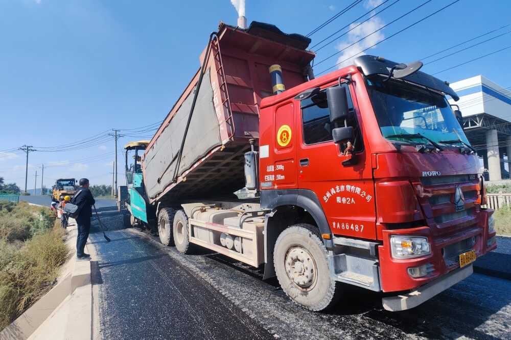 在甘肅省科技重大專項(xiàng)(創(chuàng)新聯(lián)合體)等項(xiàng)目支持下,唐志誠(chéng)團(tuán)隊(duì)從退役風(fēng)機(jī)葉片材料結(jié)構(gòu)和理化性質(zhì)出發(fā),利用退役風(fēng)機(jī)葉片質(zhì)輕、強(qiáng)度高、耐腐蝕等特點(diǎn),通過物理破碎和化學(xué)處理方式,將退役風(fēng)機(jī)葉片改性后在瀝青混合料和水泥混凝土中探索應(yīng)用。在與甘肅路橋善建科技有限公司的合作下,2024年9月,退役風(fēng)機(jī)葉片改性瀝青混合料在甘肅蘭州清傅公路輔路上得到了示范性鋪設(shè)。