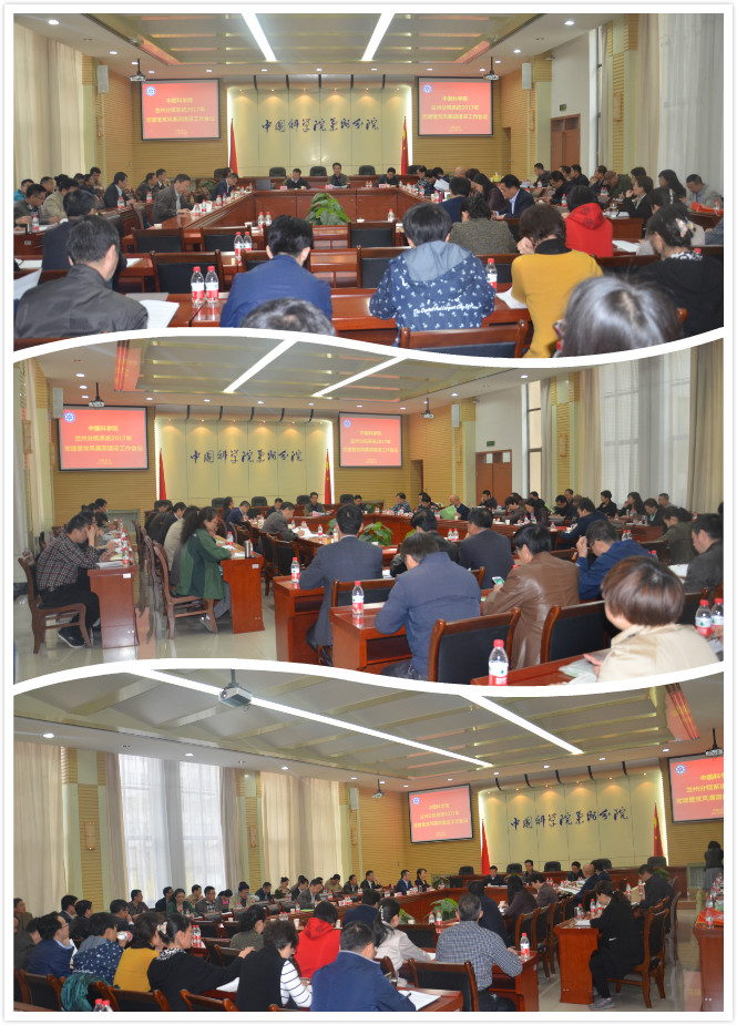 4月7日,中國科學院蘭州分院系統(tǒng)2017年黨建暨黨風廉政建設工作會議在分院101會議室召開,分院領導、蘭州、西寧地區(qū)院屬各單位黨委及紀委書記、副書記、紀委委員、黨辦負責人和紀監(jiān)審部門負責人及工作人員、支部紀檢委員等近100人參會。會議由蘭州分院分黨組書記謝銘主持。