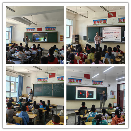 與會人員為王泉村鷺島小學孩子們帶來了系列科普報告,送學下鄉(xiāng),將習近平總書記智志雙扶要求落在具體關(guān)愛舉措中。材料輻照效應(yīng)室副研究員、九三學社社員李宗臻以《名偵探柯南與科學探秘之返老還童》為題,通過動漫柯南中的故事情節(jié),引入了細胞凋亡、提純技術(shù)、化學反應(yīng)等科學知識,生動地表達了科學源于生活,科學無處不在。原子分子結(jié)構(gòu)與動力學室副研究員、九三學社社員張瑞田以《絢麗的天文觀測和有趣的原子世界》為題, 告訴同學們天文望遠鏡為我們了解宇宙打開了一扇窗,萬物皆由原子組成,天文觀測主要是光譜,而加速器原子物理實驗為我們揭秘絢麗的天文現(xiàn)象搭建了一座橋梁。核電子學室高級工程師、九三學社社員蒲天磊作了題為《神奇的電——電的故事與安全用電》報告, 講述了人類從發(fā)現(xiàn)電到應(yīng)用電的一系列故事,科普了相關(guān)原理,進行了安全用電教學。所級公共平臺高級實驗師、九三學社社員李小剛則通過《世界的大與小》,讓小朋友們認識了宇宙的浩瀚無邊和微觀世界的微不可見。豐富廣泛的主題,深入淺出的講解,讓同學們聽得入神、受益良多。