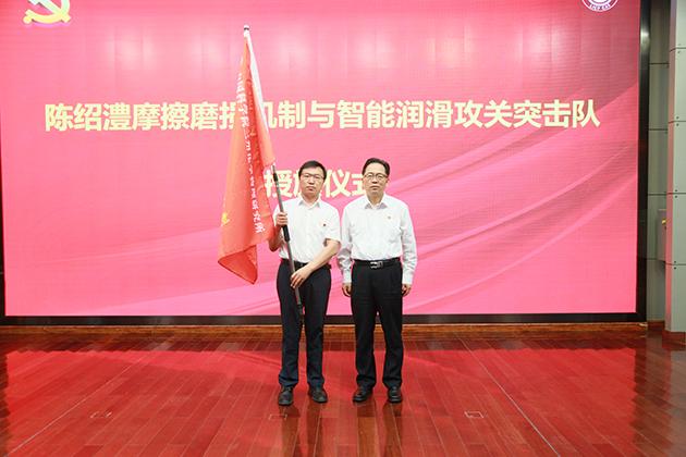 大會舉行了陳紹澧摩擦磨損機制與智能潤滑攻關(guān)突擊隊授旗儀式,王齊華向突擊隊隊長張永勝研究員授予旗幟,張永勝作了表態(tài)發(fā)言。