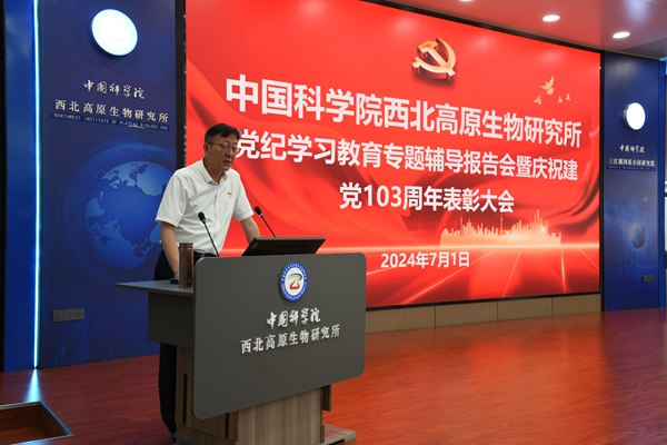 為慶祝中國共產(chǎn)黨成立103周年,弘揚偉大建黨精神,持續(xù)深入開展黨紀學習教育,7月1日下午,中國科學院西北高原生物研究所(以下簡稱西北高原所)召開黨紀學習教育專題輔導報告會暨慶祝建黨103周年表彰大會。西北高原所在職職工、離退休職工、研究生參加會議,會議由西北高原所黨委副書記、紀委書記楊勇剛主持。?