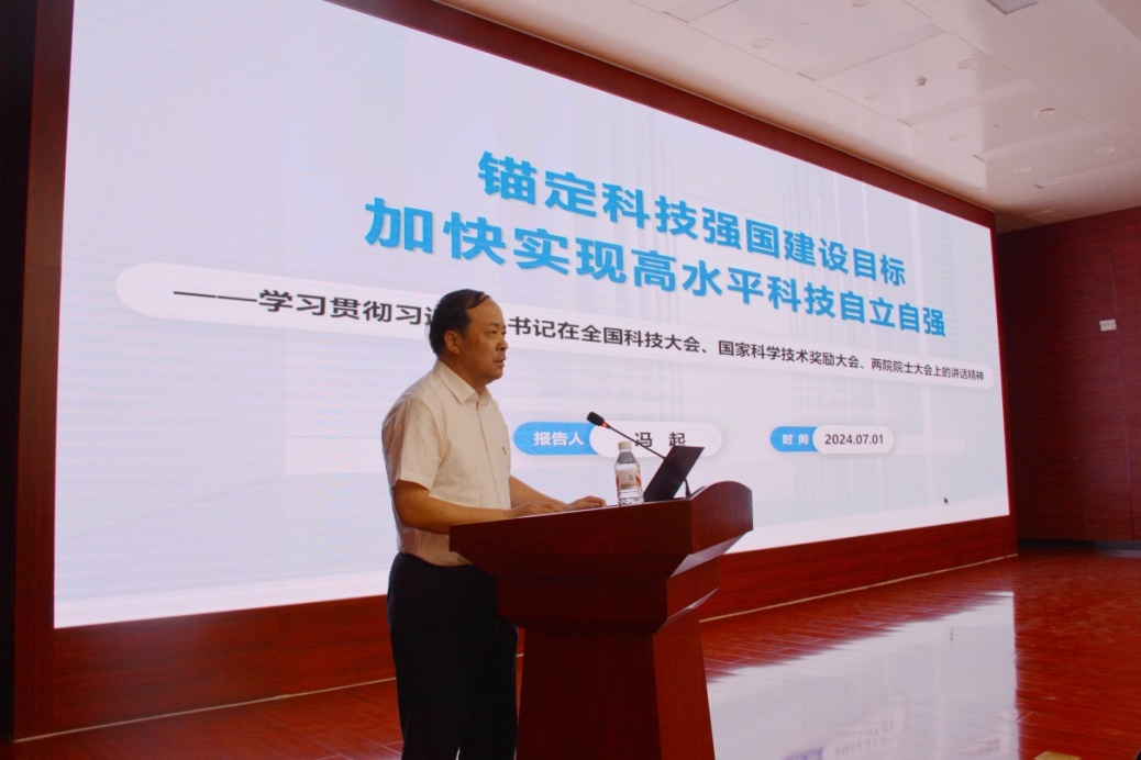 院長馮起傳達(dá)學(xué)習(xí)了習(xí)近平總書記重要講話精神和全國科技大會精神,作了《錨定科技強(qiáng)國建設(shè)目標(biāo) 加快實現(xiàn)高水平科技自立自強(qiáng)》專題報告。他強(qiáng)調(diào),全體黨員干部要牢記國家戰(zhàn)略科技力量職責(zé)定位,面向國家重大戰(zhàn)略需求和科技前沿,持續(xù)凝練并推動重大科技任務(wù)攻關(guān),自覺把科研追求融入建設(shè)科技強(qiáng)國的偉大事業(yè)中,將學(xué)習(xí)成果轉(zhuǎn)化為建設(shè)科技強(qiáng)國的強(qiáng)大動力和生動實踐,推動各項工作不斷取得新的更大的成績。