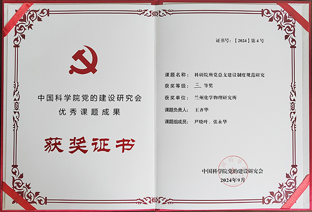 蘭州化物所獲中國科學院黨的建設研究會2024年優(yōu)秀課題成果三等獎