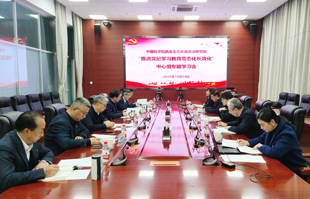 10月24日,中國科學(xué)院西北生態(tài)環(huán)境資源研究院召開“推進黨紀學(xué)習(xí)教育常態(tài)化長效化”黨委理論學(xué)習(xí)中心組專題學(xué)習(xí)會,深入學(xué)習(xí)領(lǐng)會習(xí)近平總書記關(guān)于黨紀學(xué)習(xí)教育的重要指示精神和中央黨的建設(shè)工作領(lǐng)導(dǎo)小組第八次會議精神,并結(jié)合實際進行發(fā)言交流與研究討論。