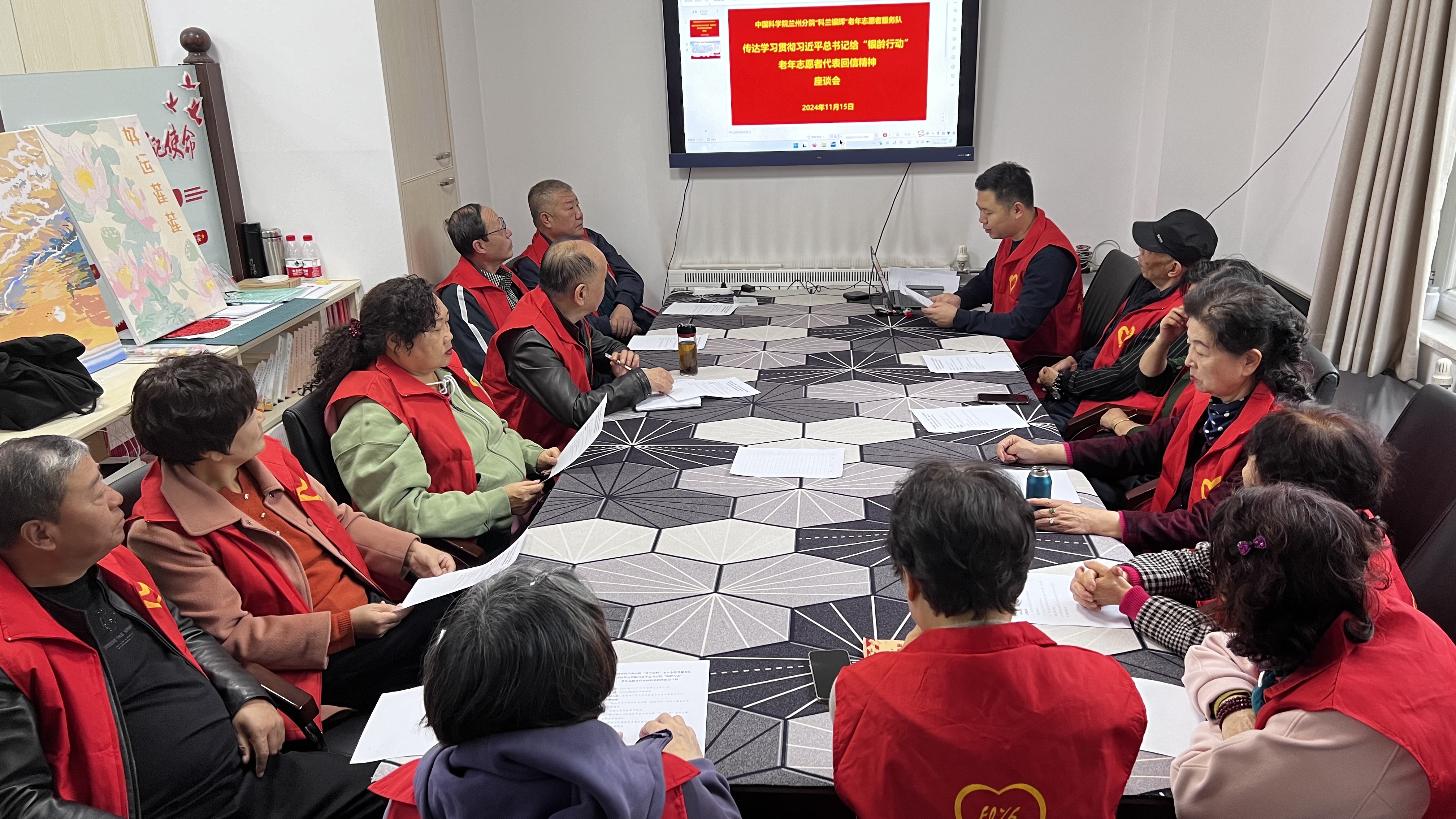 召開(kāi)傳達(dá)學(xué)習(xí)回信精神座談會(huì)。蘭州分院“科蘭銀輝”老年志愿者服務(wù)隊(duì)全體隊(duì)員認(rèn)真學(xué)習(xí)了習(xí)近平總書(shū)記的回信內(nèi)容,深刻領(lǐng)會(huì)總書(shū)記對(duì)老年志愿者們?cè)诜?wù)基層、服務(wù)群眾,向社會(huì)傳遞正能量等方面發(fā)揮的積極作用。老年志愿者暢所欲言,交流學(xué)習(xí)體會(huì),明確努力方向,表達(dá)了齊心聚力展現(xiàn)新時(shí)代老年人精神風(fēng)貌的愿望。會(huì)上,審議通過(guò)了《蘭州分院“科蘭銀輝”老年志愿者服務(wù)隊(duì)章程》。