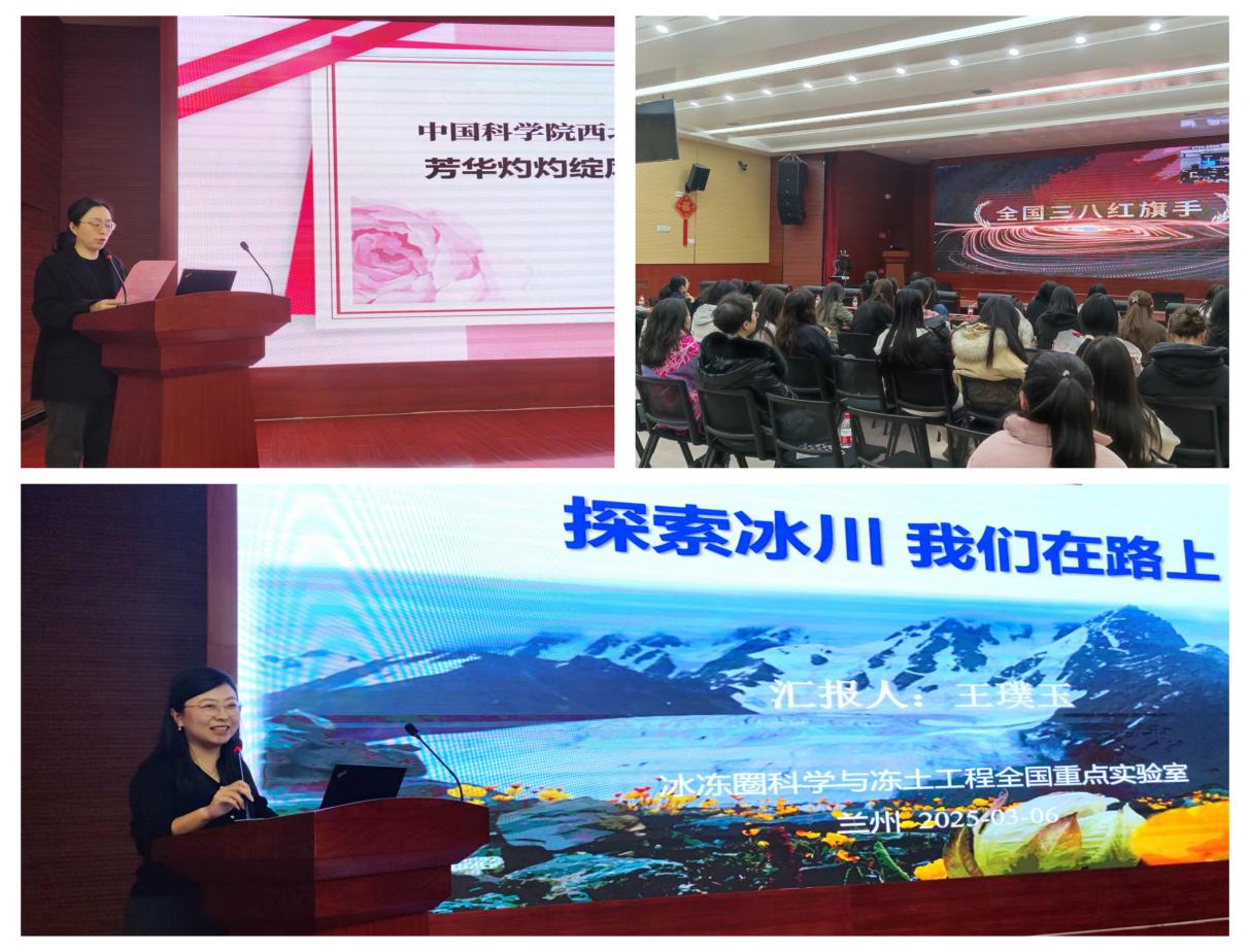 3月6日,婦委會(huì)組織女職工、女研究生集中觀(guān)看了中國(guó)科學(xué)院“搶占科技制高點(diǎn) 巾幗建功助攻堅(jiān)”先進(jìn)事跡報(bào)告會(huì),聆聽(tīng)了2024年度全國(guó)三八紅旗手、全國(guó)巾幗文明崗、中央和國(guó)家機(jī)關(guān)三八紅旗手等獲獎(jiǎng)代表的感人事跡,感悟新時(shí)代女性科技工作者勇攀高峰的拼搏精神。隨后,婦委會(huì)主任孟憲紅研究員主持召開(kāi)了西北研究院專(zhuān)題報(bào)告會(huì),紀(jì)委書(shū)記袁小華代表領(lǐng)導(dǎo)班子向全體女職工致以節(jié)日問(wèn)候和美好祝愿,感謝大家為西北研究院科技創(chuàng)新事業(yè)作出的重要貢獻(xiàn),并鼓勵(lì)全體女職工以更加昂揚(yáng)的精神面貌,在各自崗位上繼續(xù)拼搏奮斗。青年女科學(xué)家王璞玉研究員以《探索冰川 我們?cè)诼飞稀窞轭},分享了自己和團(tuán)隊(duì)扎根冰川的科研往事,為大家?guī)?lái)了一場(chǎng)科學(xué)與情懷交織的精神盛宴。