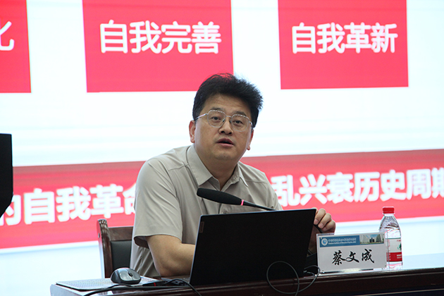 蔡文成作了題為“深刻理解習(xí)近平總書記關(guān)于黨的作風建設(shè)重要論述及學(xué)習(xí)貫徹中央八項規(guī)定精神學(xué)習(xí)教育”的輔導(dǎo)報告。全面介紹了貫徹落實中央八項規(guī)定精神學(xué)習(xí)教育的重大意義,系統(tǒng)闡述了習(xí)近平總書記關(guān)于作風建設(shè)重要論述的理論邏輯、歷史邏輯、文化邏輯和現(xiàn)實邏輯,并從“為什么抓”“抓什么”“如何抓”黨的作風建設(shè)三個層面,深入解讀了習(xí)近平總書記關(guān)于作風建設(shè)的重要論述的核心要義。最后,他結(jié)合科研院所實際,就如何貫徹落實黨的作風建設(shè)及中央八項規(guī)定精神的實踐要求提出了思考和建議。