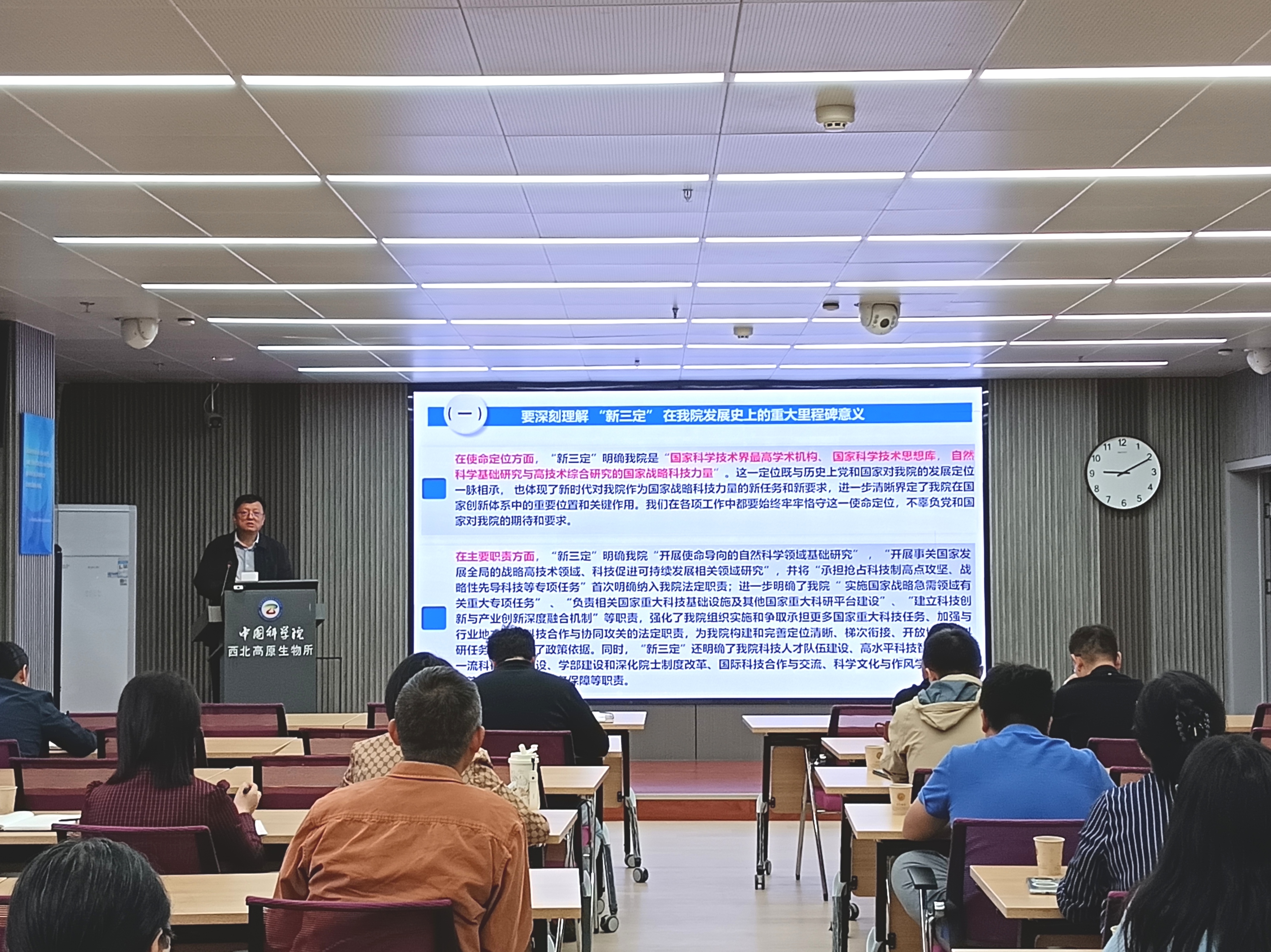 陳世龍傳達了院黨組夏季擴大會議精神,重點圍繞貫徹落實黨中央賦予中國科學(xué)院的新使命新要求、組織實施國家重大科技任務(wù)、高質(zhì)量做好“十五五”規(guī)劃編制工作、進一步深化科研院所改革以及鞏固深化深入貫徹中央八項規(guī)定精神學(xué)習(xí)教育成果等方面進行了深入講解。結(jié)合西北高原所科研工作實際,將講話精神與研究所重點工作相結(jié)合,引導(dǎo)參會人員將思想和行動統(tǒng)一到院黨組決策部署上來。