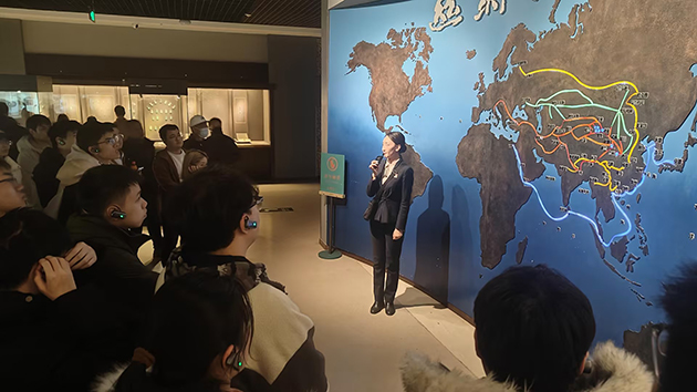 在八路軍蘭州辦事處紀(jì)念館酒泉路舊址大家參觀了八路軍駐甘辦事處與甘肅抗日救亡展覽和八路軍駐甘辦事處原狀陳列展覽,瞻仰了八路軍蘭州辦事處革命舊址,全面解了黨中央在這里宣傳民族抗日統(tǒng)一戰(zhàn)線,開展抗日救亡活動,輸送進步人士到延安,指導(dǎo)和創(chuàng)建進步團體,營救紅西路軍失散人員等情況。在甘南路舊址參觀了中國工農(nóng)紅軍西路軍事跡展、紅軍聯(lián)絡(luò)處原狀陳列展,學(xué)習(xí)了中國工農(nóng)紅軍西路軍在征戰(zhàn)河西走廊期間,為打通國際路線、策應(yīng)河?xùn)|紅軍、策應(yīng)“西安事變”和平解決寫下可歌可泣的壯麗篇章。在甘肅省博物館絲綢之路文明、甘肅彩陶等展館,大家了解了絲綢之路的發(fā)展歷程、民俗文化,以及甘肅省深厚的人文歷史文化底蘊和特色文化資源。