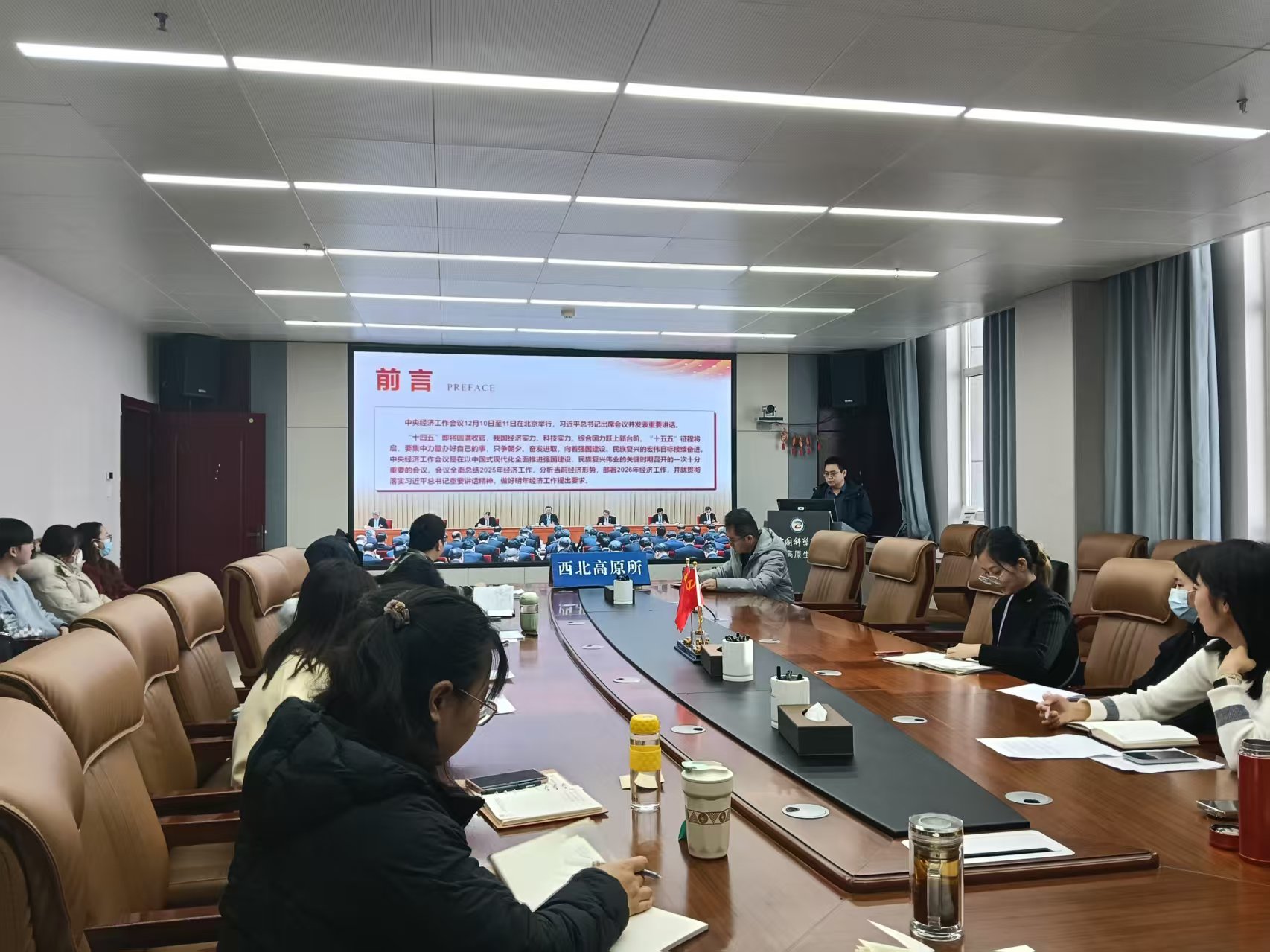 12月18日下午,中國科學(xué)院西北高原生物研究所農(nóng)業(yè)中心黨支部召開黨員大會(huì),深入學(xué)習(xí)貫徹2025年中央經(jīng)濟(jì)工作會(huì)議精神。大會(huì)由支部書記陳文杰主持,支部全體黨員、發(fā)展對(duì)象及入黨積極分子參加。