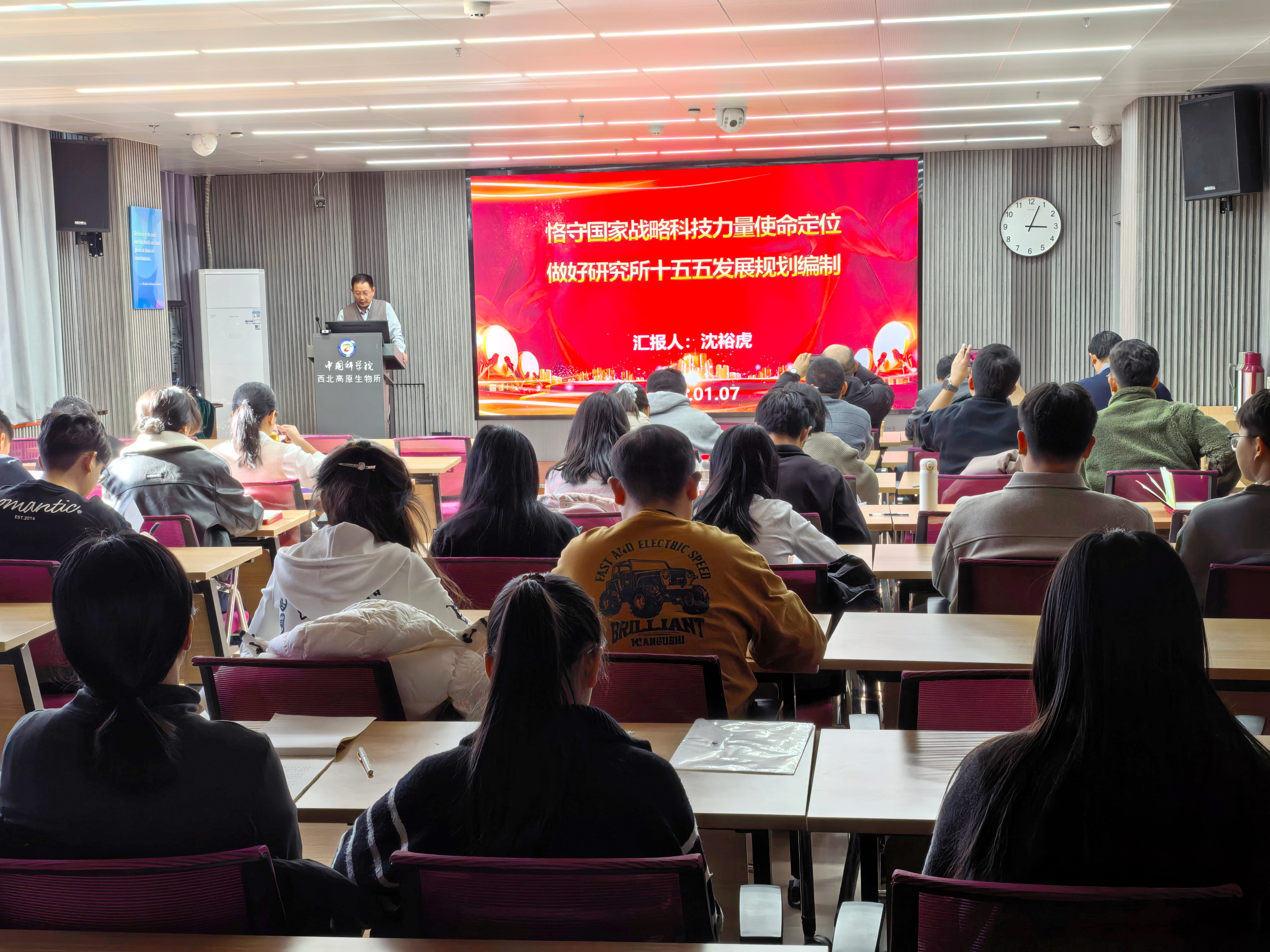 會上,黨委委員、高原生態(tài)農(nóng)業(yè)研究中心主任沈?;⒀芯繂T圍繞二十屆四中全會精神、院重大科研任務(wù)重點支持方向和研究所“十五五”規(guī)劃編制,作了《恪守國家戰(zhàn)略科技力量使命定位——做好研究所“十五五”發(fā)展規(guī)劃編制》黨課報告,報告從新時期我院使命定位、二十屆四中全會提出的規(guī)劃建議、國家層面涉農(nóng)“十五五” 規(guī)劃和研究所涉農(nóng)規(guī)劃的思考等關(guān)鍵內(nèi)容進(jìn)行了詳細(xì)解讀,強(qiáng)調(diào)支部黨員要不斷強(qiáng)化作為“國家隊”“國家人”的使命意識和心系“國家事”、肩扛“國家責(zé)”的責(zé)任擔(dān)當(dāng),結(jié)合工作實際,運(yùn)用新技術(shù)新方法解決好生態(tài)難題。