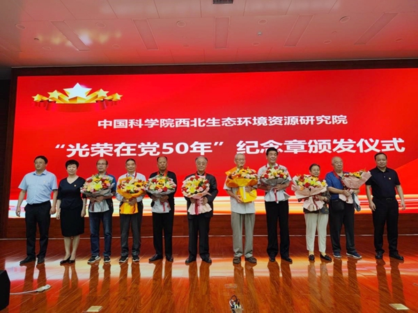 光榮在黨五十載,永葆初心跟黨走。西北研究院領(lǐng)導班子成員、黨委委員為到場的老黨員逐一佩戴了“光榮在黨50年”紀念章,并向他們表示熱烈祝賀和崇高敬意,研究生黨員向老黨員獻上了祝福的鮮花?!肮鈽s在黨50年”紀念章,蘊含著黨對老黨員幾十年來忠誠黨的事業(yè)、踐行黨的宗旨、兢兢業(yè)業(yè)為黨工作、踏踏實實為群眾服務的敬重和肯定,傳遞了黨的關(guān)心愛護和牽掛。站在新的歷史起點上,黨員干部要進一步增強黨性修養(yǎng),弘揚新風正氣,涵養(yǎng)忠誠于黨、奉獻在黨的情懷,始終不忘“來時的路”,奮力書寫砥礪奮進、接棒前行的新時代華章!