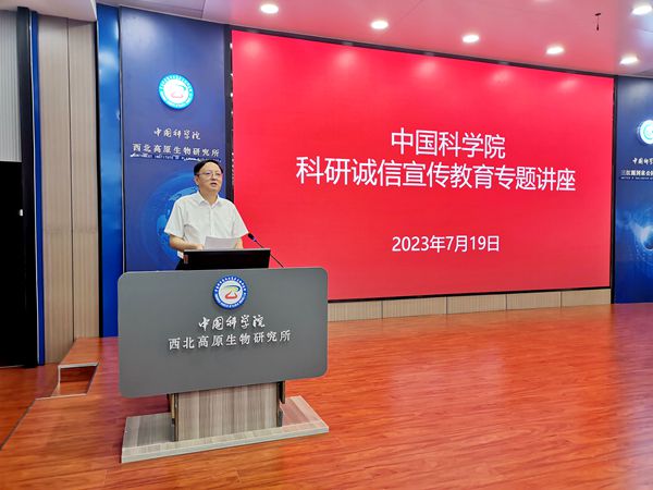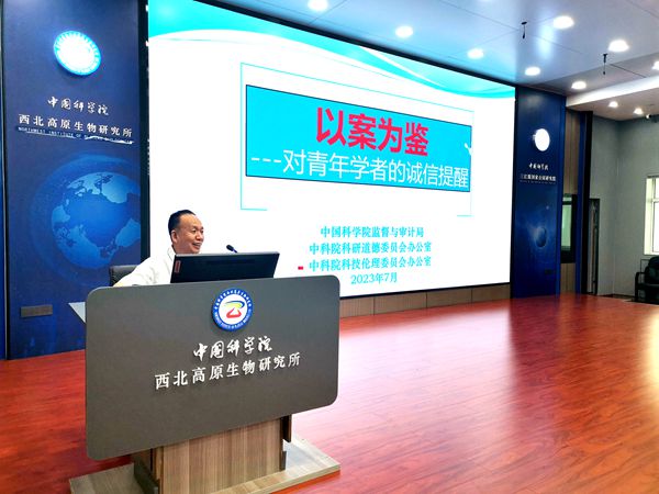 為深入開展學習貫徹習近平新時代中國特色社會主義思想主題教育,進一步加強研究所科研誠信建設,教育引導科研人員和研究生遵守科研規(guī)范、增強誠信自律,共同傳承中國科學院優(yōu)良傳統(tǒng)。7月19日下午,中國科學院科研誠信宣傳教育專題講座在中國科學院西北高原生物研究所舉行。中國科學院蘭州分院紀檢組組長、分黨組成員、系統(tǒng)單位紀委書記吳建剛,中國科學院巡視辦整改督辦室負責人程海濤,中國科學院西北高原生物研究所和青海鹽湖研究所的所領導、科研人員、特別研究助理、在學研究生等100余人參加報告會。報告會由西北高原所所長陳世龍主持。