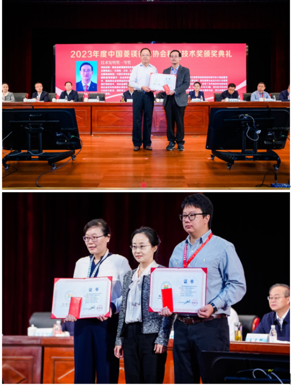 王定邦、吳志堅(jiān)共同為青海柴循鹽湖產(chǎn)業(yè)研究有限公司揭牌,吳志堅(jiān)、李穎虹分別為2023年度中國菱鎂協(xié)會(huì)科學(xué)技術(shù)獎(jiǎng)技術(shù)發(fā)明獎(jiǎng)一等獎(jiǎng)和青年科技獎(jiǎng)獲得者頒發(fā)證書。