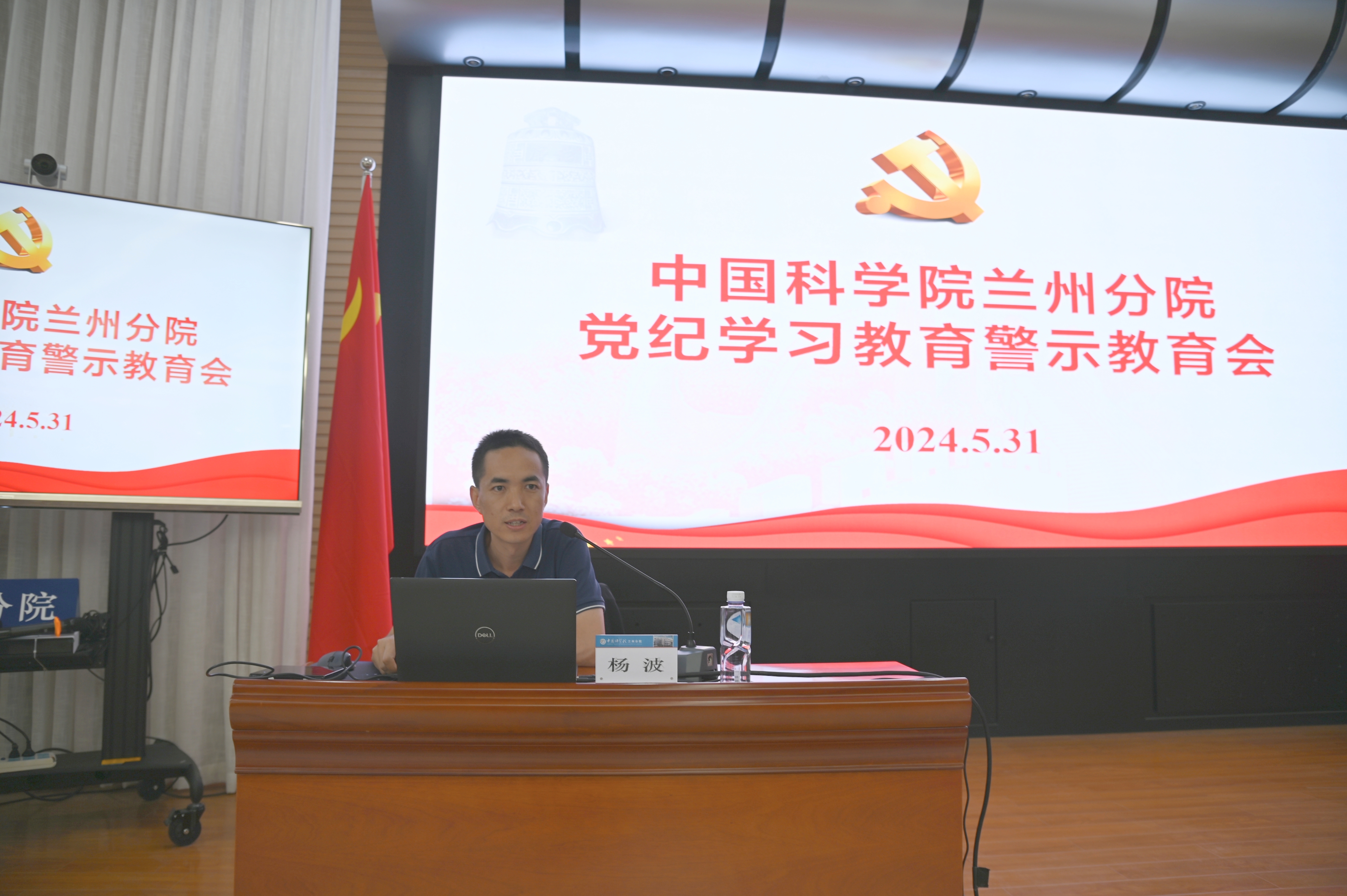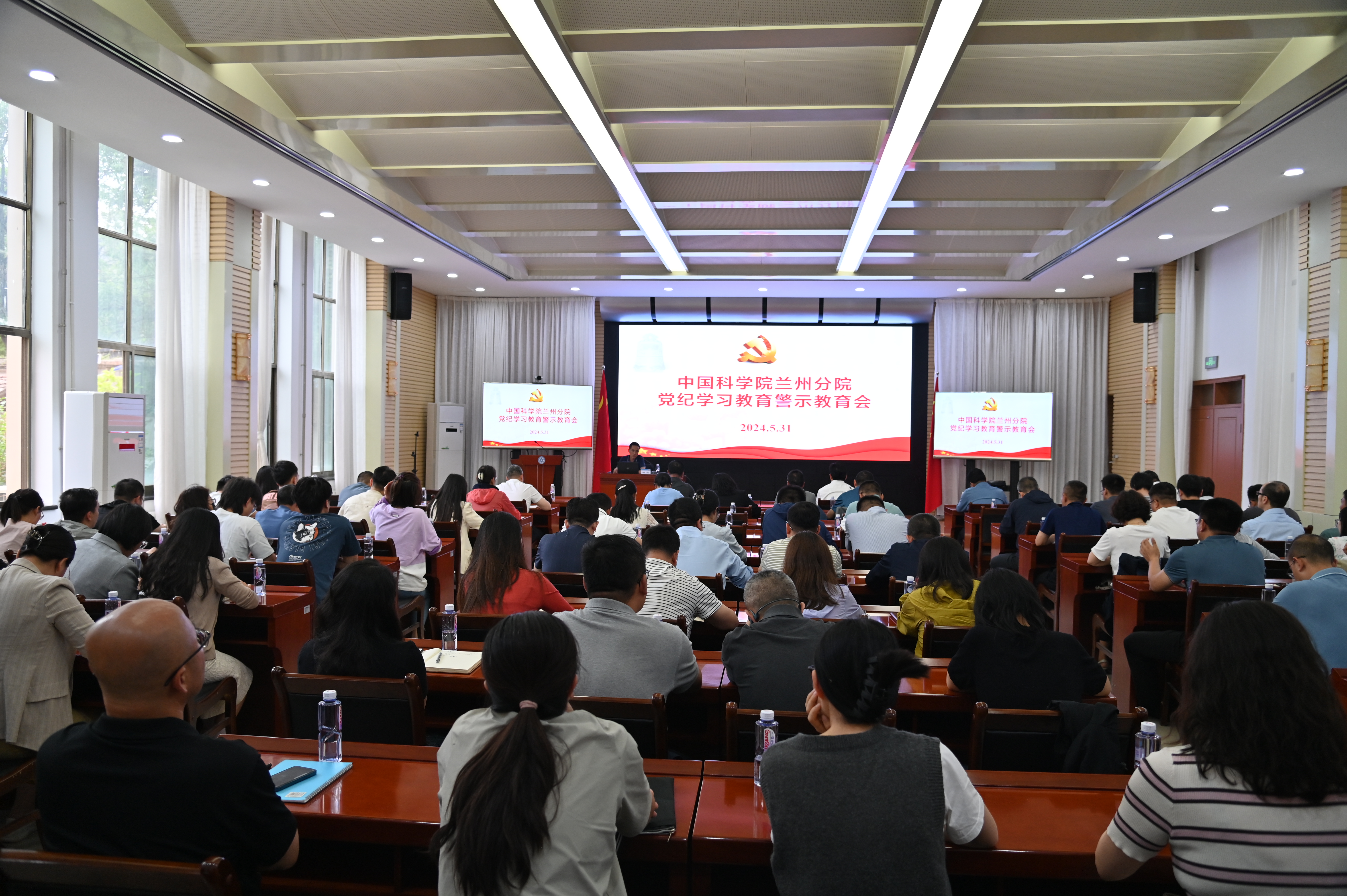 5月31日,蘭州分院召開黨紀學習教育警示教育會。蘭州化學物理研究所黨委書記王齊華、西北生態(tài)環(huán)境資源研究院副院長康世昌、近代物理研究所紀委書記宋華龍以及分院系統(tǒng)各單位黨員干部100余人參加會議。會議由蘭州分院分黨組成員、紀檢組組長吳建剛主持。