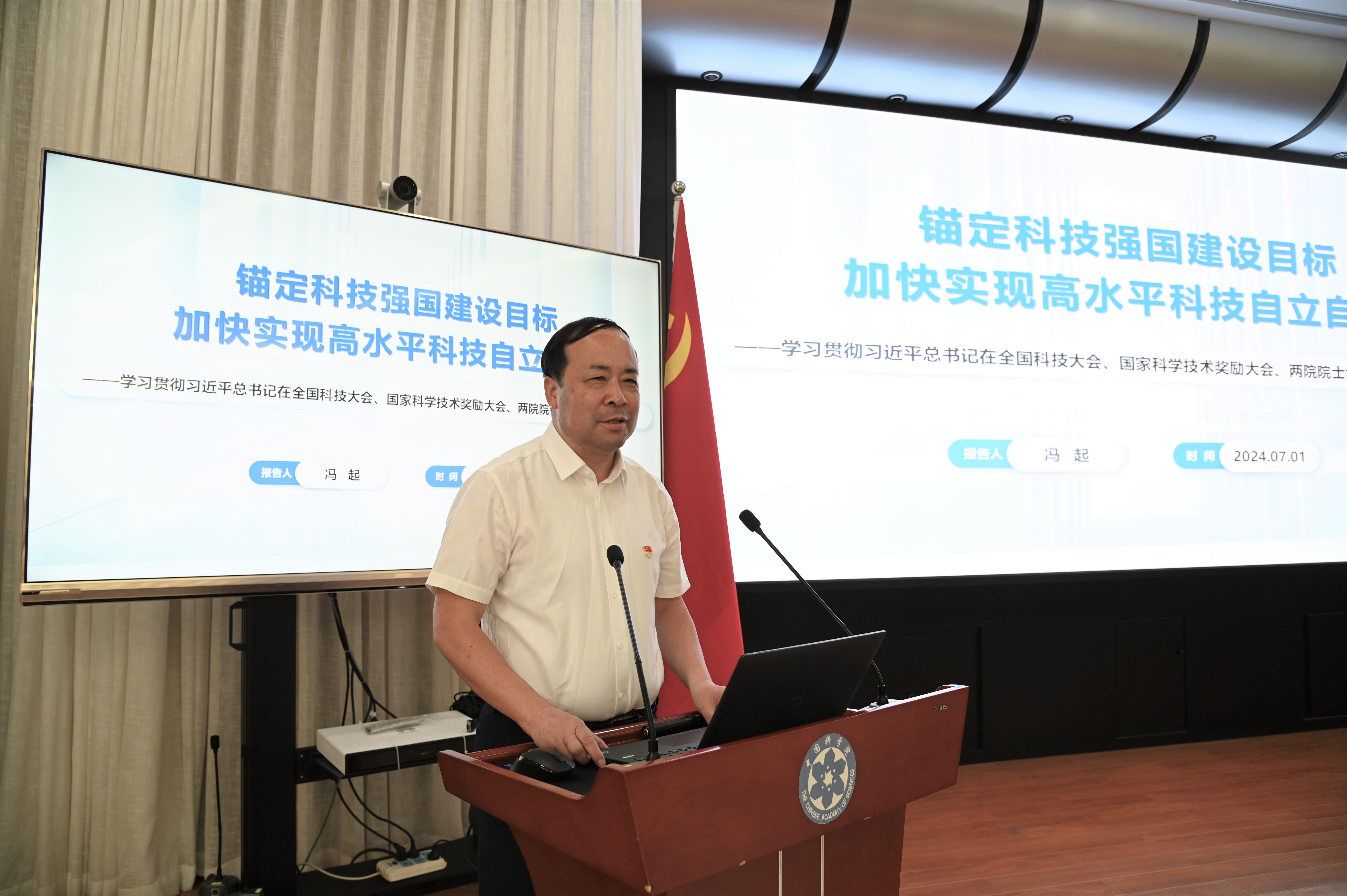 蘭州分院分黨組書記、院長(zhǎng)馮起作《錨定科技強(qiáng)國(guó)建設(shè)目標(biāo)? 加快實(shí)現(xiàn)高水平科技自立自強(qiáng)》專題報(bào)告,傳達(dá)學(xué)習(xí)習(xí)近平總書記重要講話和全國(guó)科技大會(huì)精神。他強(qiáng)調(diào),科技興則民族興,科技強(qiáng)則國(guó)家強(qiáng),要牢記國(guó)家戰(zhàn)略科技力量職責(zé)定位,面向國(guó)家重大需求和科技前沿持續(xù)凝練與組織實(shí)施重大科技任務(wù),要深刻認(rèn)識(shí)科技的戰(zhàn)略先導(dǎo)地位和根本支撐作用,學(xué)習(xí)科技新知識(shí)、掌握科技新技能、增強(qiáng)推動(dòng)科技工作新本領(lǐng),在搶占科技制高點(diǎn)新征程中貢獻(xiàn)更多力量,為科技事業(yè)發(fā)展再立新功。