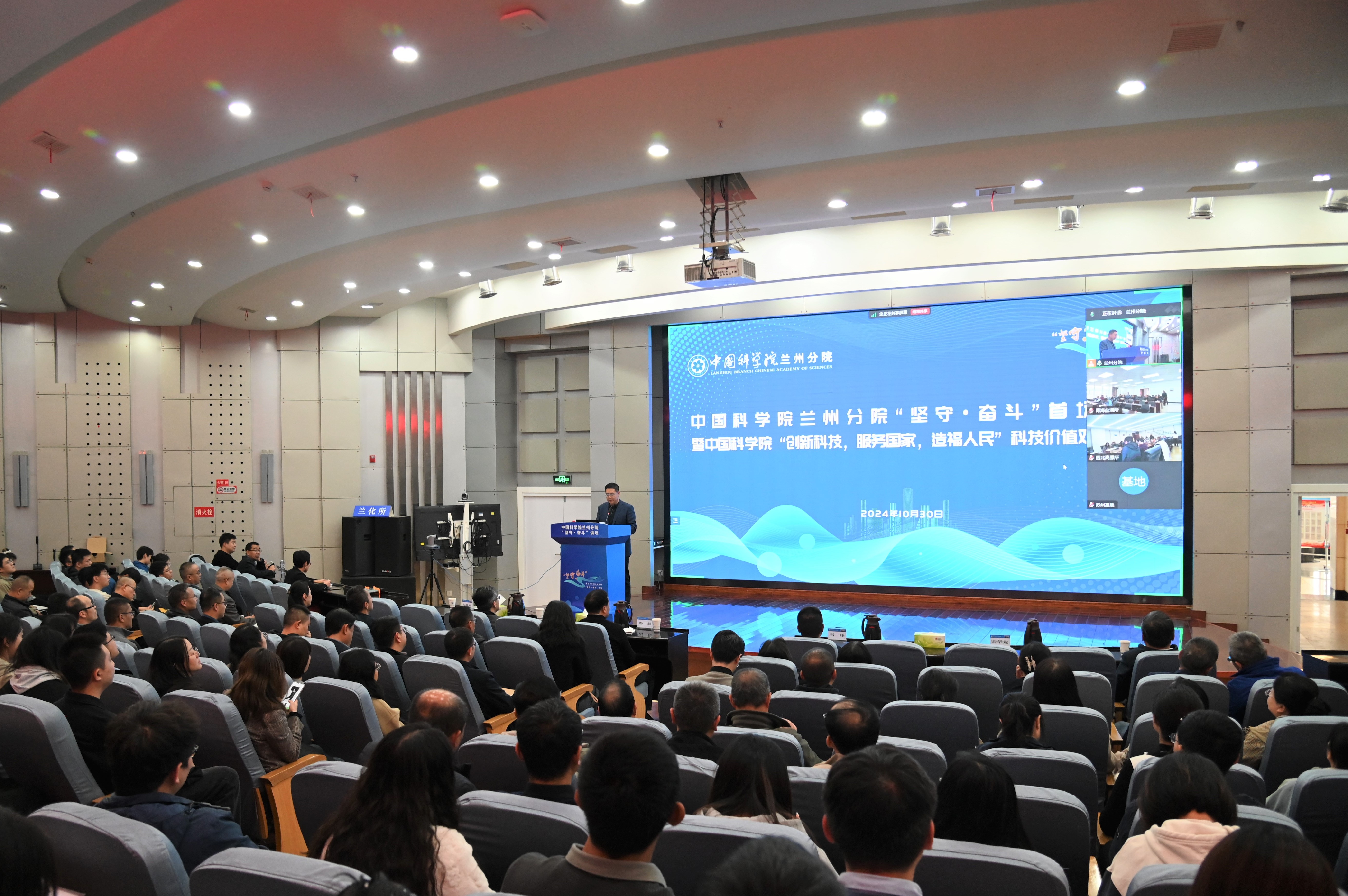 蘭州分院系統(tǒng)在蘭各單位領(lǐng)導(dǎo)班子成員、中層干部、黨支部書記、科研管理骨干、研究生代表,機(jī)關(guān)全體職工近300人參加報(bào)告會(huì)。青海鹽湖研究所、西北高原生物研究所以視頻形式線上參加。