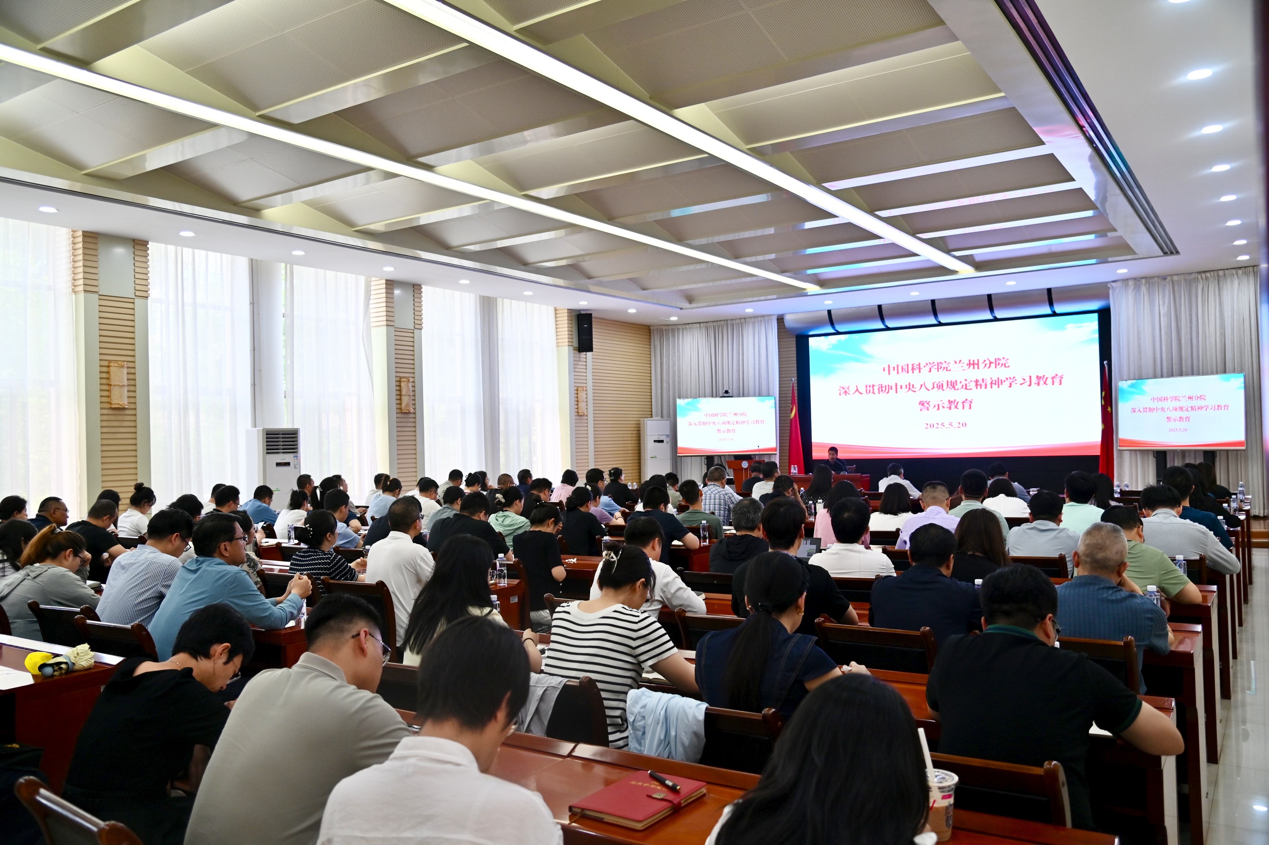 為強化黨員干部紀律意識和規(guī)矩意識,5月20日,中國科學院蘭州分院分黨組紀檢組召開系統(tǒng)單位深入貫徹中央八項規(guī)定精神學習教育警示教育會。西北生態(tài)環(huán)境資源研究院黨委書記張長春、紀委書記袁小華,蘭州化學物理研究所紀委書記張景光以及在蘭各單位黨員干部100余人參加會議。會議由蘭州分院分黨組成員、紀檢組組長吳建剛主持。