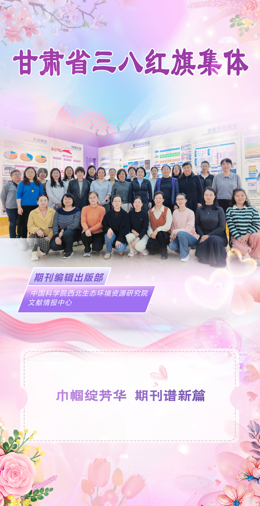 近日,2025年度全國、中國科學(xué)院及甘肅省三八紅旗手、三八紅旗集體等系列評選結(jié)果陸續(xù)揭曉,西北生態(tài)環(huán)境資源研究院孟憲紅研究員榮獲全國三八紅旗手稱號、蘭州化學(xué)物理研究所喬旦研究員榮獲中國科學(xué)院三八紅旗手稱號、近代物理研究所孔潔正高級工程師榮獲甘肅省三八紅旗手稱號、西北生態(tài)環(huán)境資源研究院文獻(xiàn)情報中心期刊編輯出版部榮獲甘肅省三八紅旗集體稱號。