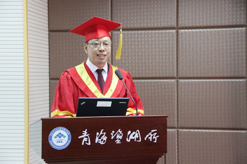 周園宣讀了青海鹽湖所學(xué)位評定委員會擬授予學(xué)生名單。學(xué)位評定委員會主席吳志堅依次為擬授予學(xué)生扶正流蘇,向?qū)W位獲得者頒發(fā)畢業(yè)紀(jì)念品。