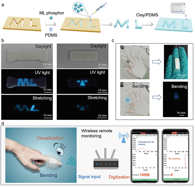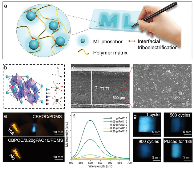 圖1. Ca6BaP4O17:Ce3+/PDMS的復合結構及摩擦/力致發(fā)光性能。