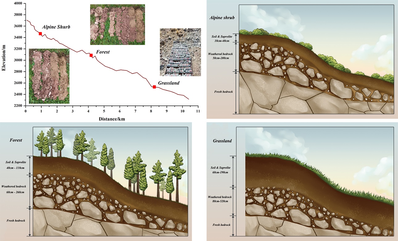 中國科學院西北生態(tài)環(huán)境資源研究院科研團隊對祁連山典型小流域土壤和基巖風化層特征進行了全面調查,分析了不同景觀單元下基巖風化層結構和儲水能力的變化,驗證了基巖風化層儲水對徑流和植物用水的調節(jié)作用。