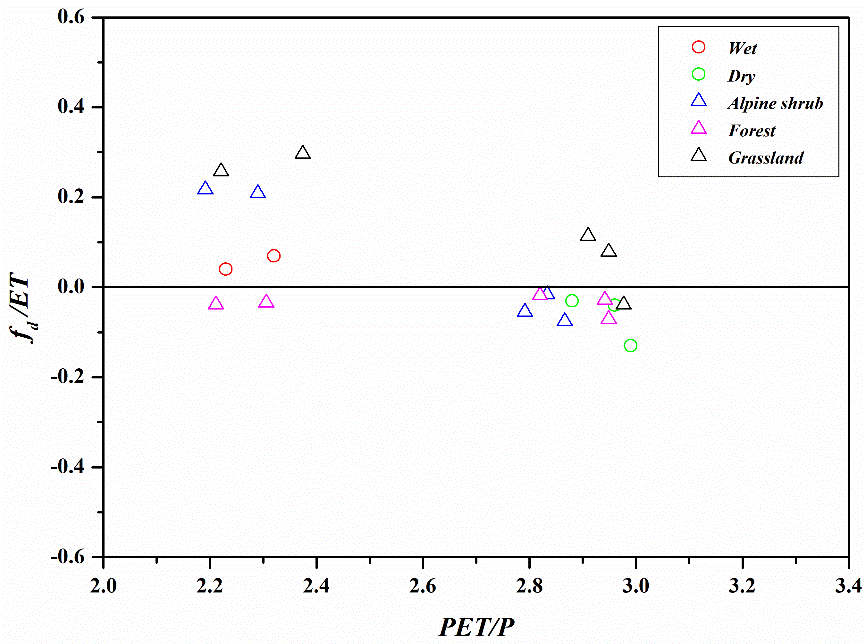 草地徑流量是高山灌叢和森林區(qū)域的2.68倍和4.68倍。高山灌叢和森林以地下徑流為主,占總徑流量的89.3%~92.6%和53.6%~73.2%。草地以地表徑流為主,占總徑流量的79.4%~85.9%。高山灌叢和森林區(qū)域大約1/3~1/4的年蒸散量來自于基巖風化層儲水,這些儲存在冬季進行補給,在夏季和秋季供樹木使用。