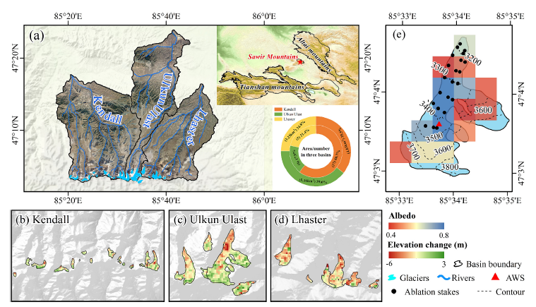 中國科學(xué)院西北生態(tài)環(huán)境資源研究院王璞玉研究員團(tuán)隊(duì)依托阿爾泰山冰凍圈科學(xué)與可持續(xù)發(fā)展綜合觀測研究站,綜合運(yùn)用模型模擬、衛(wèi)星遙感技術(shù)和野外觀測,系統(tǒng)分析了薩吾爾山冰川反照率變化及其與冰川消融的關(guān)系,重建了該區(qū)冰川物質(zhì)平衡序列,闡述了其與融水徑流的變化趨勢以及對河川徑流的影響。