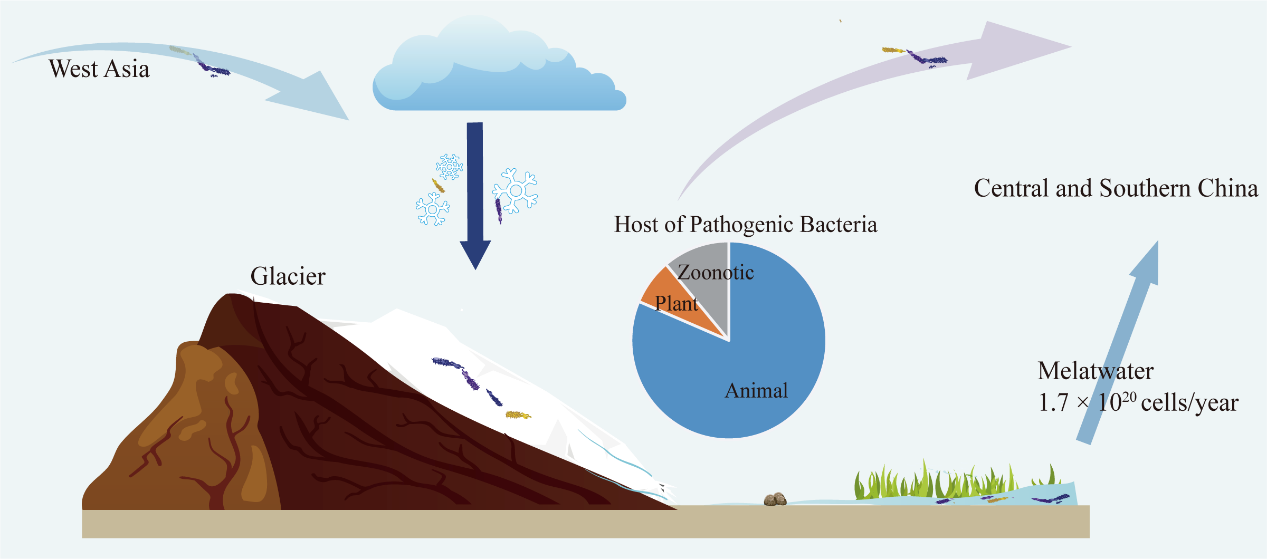 冰川是全球最大的淡水儲(chǔ)備庫,同時(shí)也是天然的微生物保存庫。隨著全球氣候變暖、冰川加速消融,封存在冰川中的致病菌被釋放出來,會(huì)對(duì)人類帶來潛在的生物安全風(fēng)險(xiǎn)。近幾十年來,環(huán)境中的病原體突破了原有的生態(tài)屏障,而快速變化的冰川生態(tài)系統(tǒng)中致病微生物的特征及傳播方式尚不清楚。