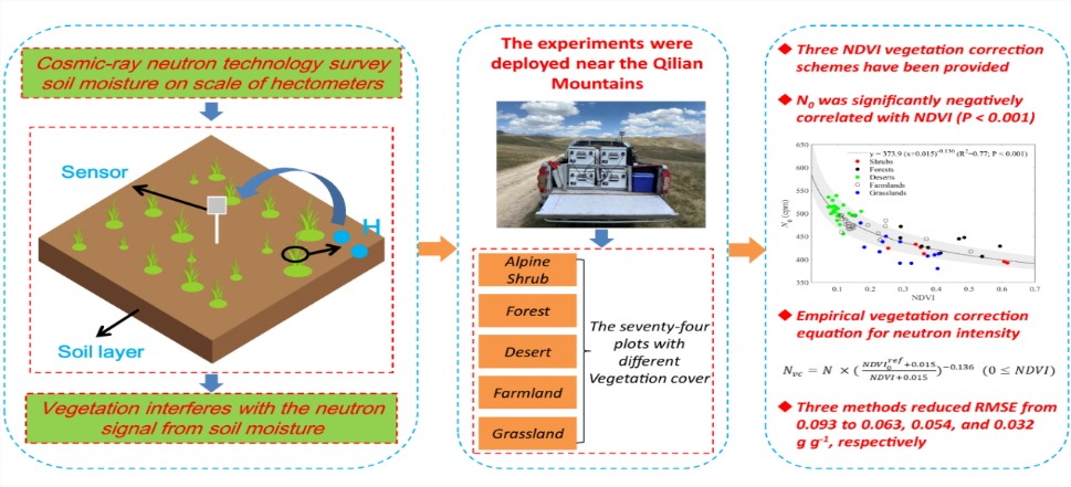 中國(guó)科學(xué)院西北生態(tài)環(huán)境資源研究院趙文智和張勇勇研究團(tuán)隊(duì)通過野外考察、定位觀測(cè)和模型分析等手段,從樣地—樣線—區(qū)域多尺度,對(duì)祁連山、河西走廊近地表宇宙射線中子強(qiáng)度特征、非土壤水氫源類型和中尺度土壤水分時(shí)空格局等進(jìn)行了研究。