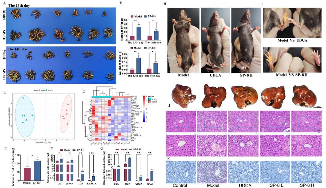 膽汁淤積性肝?。–LD)是一種復(fù)雜的肝膽疾病,由肝細胞水平的膽汁形成缺陷或膽管水平的膽汁分泌和流動受損引起。根據(jù)膽汁淤積的不同部位,可分為肝內(nèi)膽汁淤積和肝外膽汁淤積。其共同特點是肝細胞內(nèi)膽汁酸(BAs)等有毒物質(zhì)的過度積累引起膽汁淤積性肝損傷。持續(xù)性膽汁淤積可進一步誘導(dǎo)氧化應(yīng)激和炎癥信號反應(yīng),最終導(dǎo)致肝纖維化或肝細胞壞死。近年來,全球膽汁淤積癥的發(fā)病率逐年上升,尤其是在兒童、青少年和婦女中高發(fā)。目前,我國仍然缺少具有自主知識產(chǎn)權(quán)的高效的治療CLD的藥物。臨床上治療一直依賴美國FDA認證的熊去氧膽酸和奧貝膽酸,但它們的有效率不足50%,副作用明顯且價格昂貴。