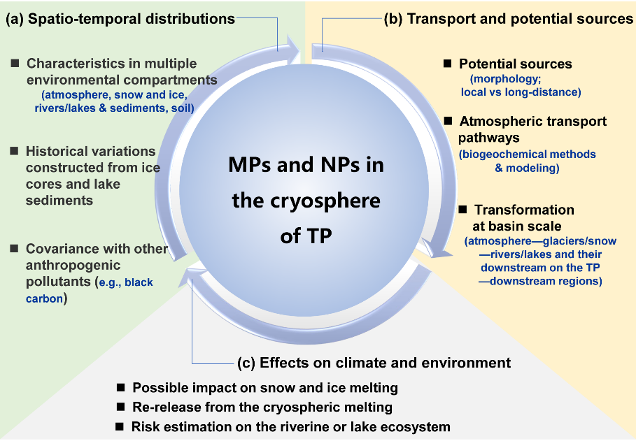 微塑料在雪冰、水體、土壤、沉積物、大氣等環(huán)境中廣泛分布,被認(rèn)為是全球重要新污染物之一。青藏高原冰凍圈地區(qū)遠(yuǎn)離人類活動(dòng)密集區(qū),是研究污染物來源、傳輸以及影響的天然實(shí)驗(yàn)室。開展青藏高原冰凍圈地區(qū)不同環(huán)境介質(zhì)中微塑料分布特征以及環(huán)境效應(yīng)的研究,能夠提升對(duì)微塑料污染全球影響的認(rèn)識(shí)。