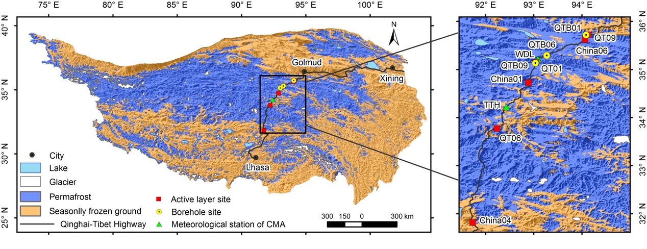 過去數(shù)十年來,全球多年凍土均以不同的速率呈現(xiàn)升溫趨勢(shì)。近年來,極端高溫和熱浪事件的頻率和強(qiáng)度不斷增加,一些研究已經(jīng)證實(shí)極端事件會(huì)通過改變活動(dòng)層水熱狀況、削弱斜坡穩(wěn)定性并引發(fā)滑塌等對(duì)凍土環(huán)境產(chǎn)生顯著影響。然而,當(dāng)前對(duì)于短期極端事件對(duì)活動(dòng)層和多年凍土的影響過程和機(jī)制仍不清楚。
