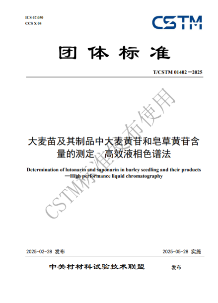 2025年2月28日,由中國科學(xué)院西北高原生物研究所、青海省藥品檢驗(yàn)檢測(cè)院、西寧海關(guān)技術(shù)中心和青海金麥杞生物科技有限公司聯(lián)合完成的中國材料與試驗(yàn)團(tuán)體標(biāo)準(zhǔn)委員會(huì)(CSTM)團(tuán)體標(biāo)準(zhǔn)《大麥苗及其制品中大麥黃苷和皂草黃苷含量的測(cè)定 高效液相色譜法》(T/CSTM 01402—2025)正式發(fā)布。該標(biāo)準(zhǔn)為基于大麥苗(青稞苗)的大健康產(chǎn)品的質(zhì)量控制和技術(shù)創(chuàng)新提供了科學(xué)依據(jù)和規(guī)范化指導(dǎo)。標(biāo)準(zhǔn)詳細(xì)規(guī)定了使用高效液相色譜法測(cè)定大麥苗及其制品中活性成分大麥黃苷和皂草黃苷含量的方法,包括樣品的前處理、色譜條件的優(yōu)化、校準(zhǔn)曲線的繪制、數(shù)據(jù)的處理、以及測(cè)量不確定度的評(píng)估等關(guān)鍵環(huán)節(jié)。標(biāo)準(zhǔn)還特別強(qiáng)調(diào)了在實(shí)際檢測(cè)中應(yīng)根據(jù)樣品的特性進(jìn)行個(gè)性化的調(diào)整和優(yōu)化,以確保檢測(cè)結(jié)果的準(zhǔn)確性和可靠性。此外,標(biāo)準(zhǔn)還提供了詳細(xì)的試驗(yàn)報(bào)告模板,包括識(shí)別樣品、實(shí)驗(yàn)室和試驗(yàn)日期所需的全部信息,以及引用標(biāo)準(zhǔn)、結(jié)果表示和異常現(xiàn)象記錄等內(nèi)容,為檢測(cè)結(jié)果的完整性和可追溯性提供了有力保障。