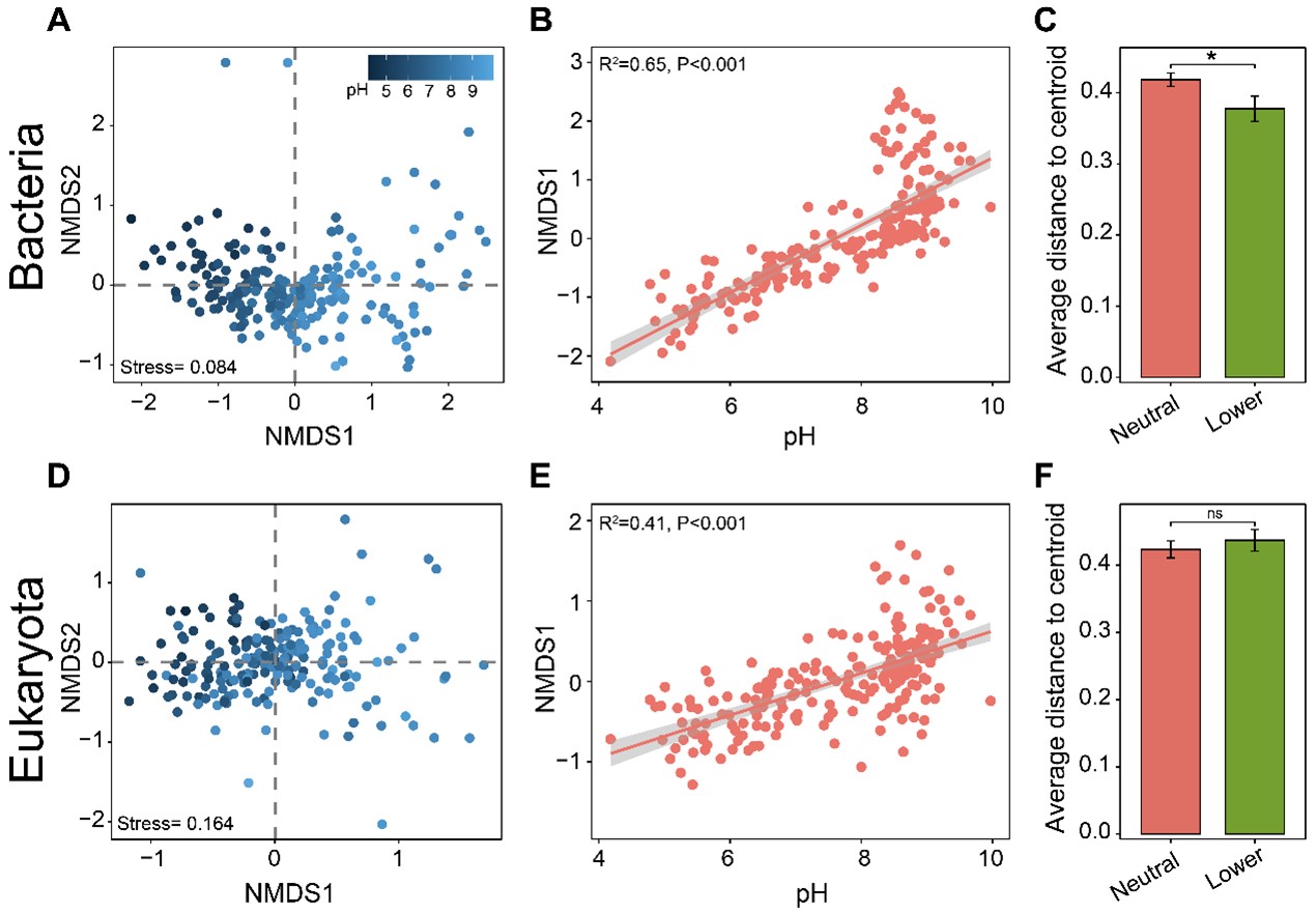 近日,中國(guó)科學(xué)院西北生態(tài)環(huán)境資源研究院李玉強(qiáng)研究員團(tuán)隊(duì)受Global Change Biology期刊邀請(qǐng)發(fā)表研究成果,利用多元交叉驗(yàn)證(NMDS+PLS-PM+PERMDISP)方法,系統(tǒng)揭示了土壤酸化過(guò)程中細(xì)菌和真核生物β-多樣性的解耦規(guī)律,及細(xì)菌和真核生物群落組成對(duì)土壤酸化的響應(yīng)差異,為理解土壤生態(tài)系統(tǒng)穩(wěn)定性提供了新視角。