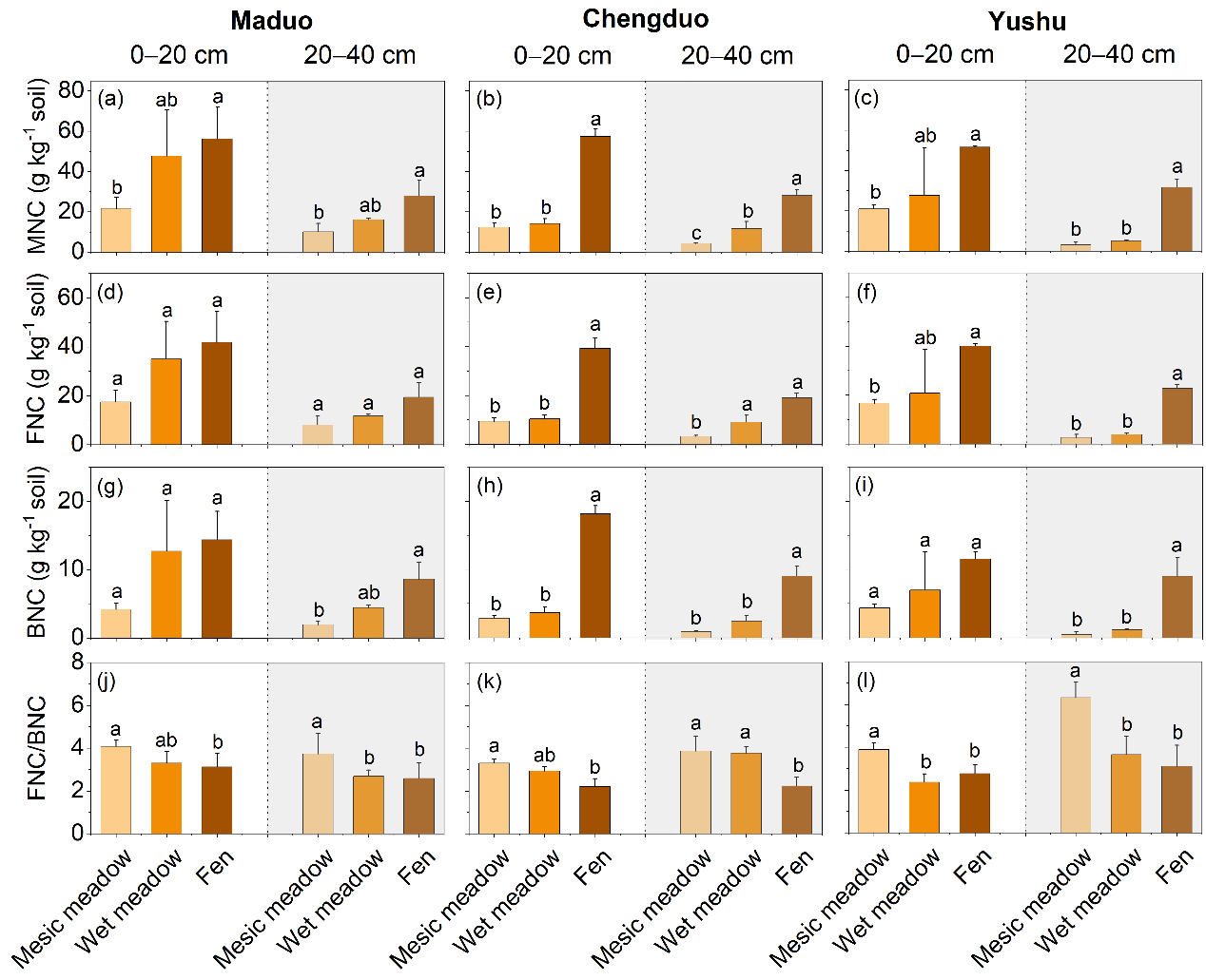 中國科學(xué)院西北生態(tài)環(huán)境資源研究院李玉強(qiáng)研究員團(tuán)隊(duì),在青藏高原沿高寒草甸-濕地連續(xù)體設(shè)置了27個采樣點(diǎn),通過測定氨基糖等指標(biāo),系統(tǒng)揭示了水文變化對土壤微生物殘體碳和顆粒有機(jī)碳積累及其對土壤有機(jī)碳貢獻(xiàn)的影響。