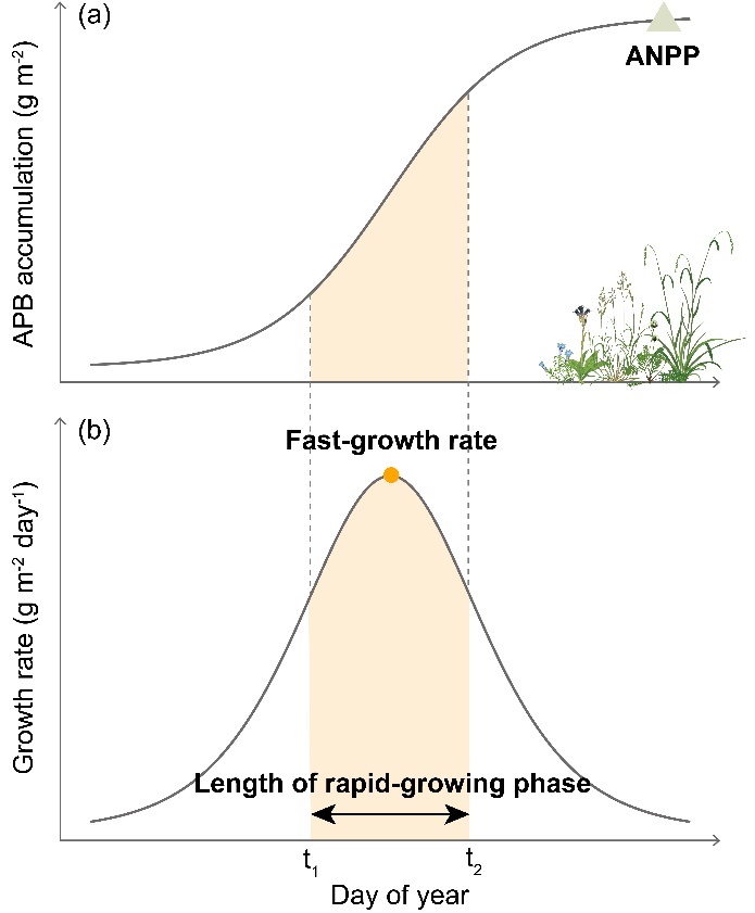 氣候變化預(yù)計(jì)將在未來(lái)數(shù)十年持續(xù)加劇,可能對(duì)反映生態(tài)系統(tǒng)功能及固碳能力的重要指標(biāo)-地上凈初級(jí)生產(chǎn)力(ANPP)產(chǎn)生重要影響。然而,目前關(guān)于十年尺度以上的長(zhǎng)期降溫效應(yīng)研究仍較為匱乏,且溫度變化通過(guò)物候級(jí)聯(lián)影響植物生長(zhǎng)與ANPP的內(nèi)在機(jī)制尚不清晰,導(dǎo)致與降溫相關(guān)的長(zhǎng)期氣候變動(dòng)效應(yīng)仍需系統(tǒng)探究。