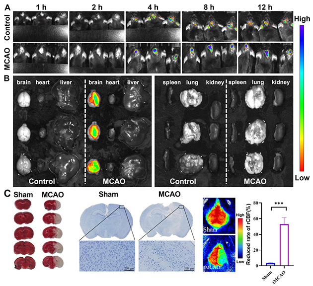 圖2. 卒中動(dòng)物模型的構(gòu)建及探針成像效果評(píng)估
