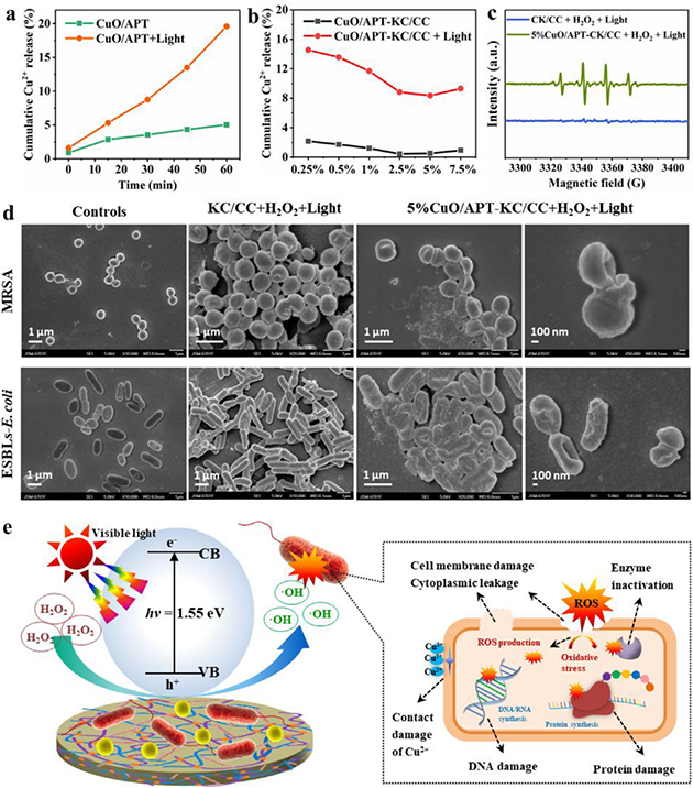 圖5.CuO/APT-KC/CC凝膠膜的抗耐藥菌活性和作用機(jī)理
