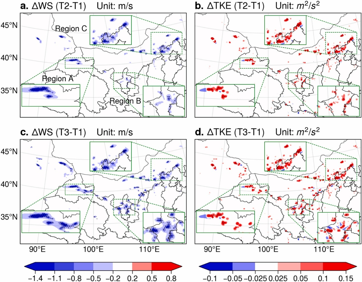 相關(guān)研究成果以Potential impacts of large-scale wind farms on regional climate and vegetation in northern China: Insights from modeling studies為題,發(fā)表于國際權(quán)威期刊Energy。該研究得到內(nèi)蒙古自治區(qū)“揭榜掛帥”項目、國家自然科學(xué)基金等的資助。