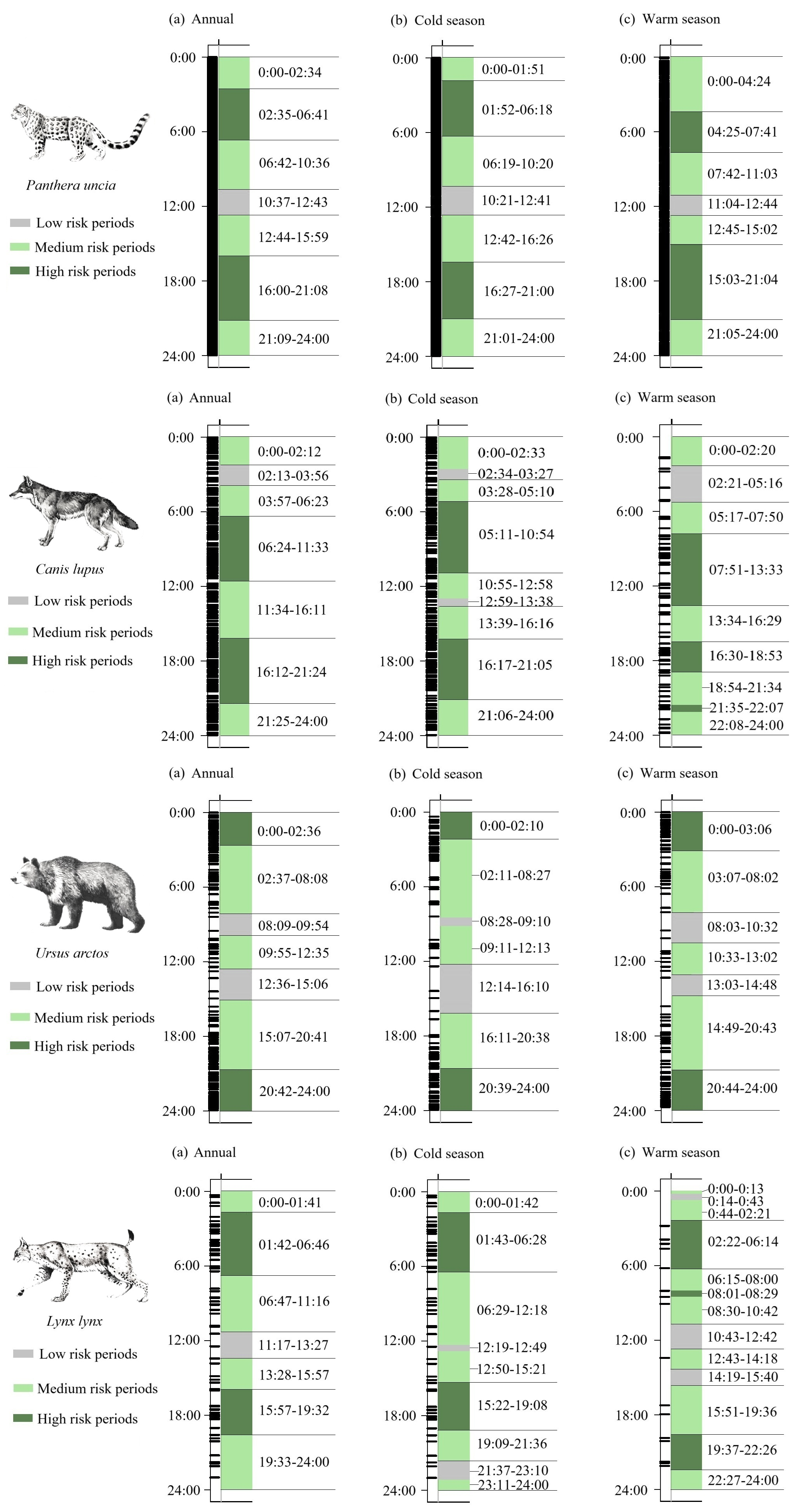 三江源地區(qū)四種食肉動物潛在肇事的風險時段