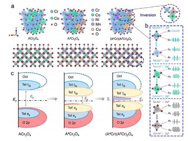 研究人員結(jié)合光譜分析與密度泛函理論計算,系統(tǒng)考察了中熵氧化物的混合價態(tài)、氧空位及電子結(jié)構(gòu)。結(jié)果表明,反尖晶石有序化和高構(gòu)型熵的協(xié)同效應(yīng)促進(jìn)了強(qiáng)軌道雜化、帶隙變窄和增強(qiáng)的電子-聲子耦合,這些機(jī)制共同支撐了卓越的紅外輻射性能。該研究系統(tǒng)的揭示了熵驅(qū)動下陽離子無序化、位點(diǎn)反轉(zhuǎn)與晶格缺陷協(xié)同調(diào)控電子結(jié)構(gòu)與聲子行為的機(jī)制,實現(xiàn)了對紅外輻射性能的精準(zhǔn)優(yōu)化。這為開發(fā)兼具高發(fā)射率與高穩(wěn)定性的新一代紅外輻射涂層提供了理論指導(dǎo),也為熱管理、能量轉(zhuǎn)換和環(huán)境保護(hù)領(lǐng)域下一代高溫材料的研發(fā)繪制了發(fā)展藍(lán)圖。