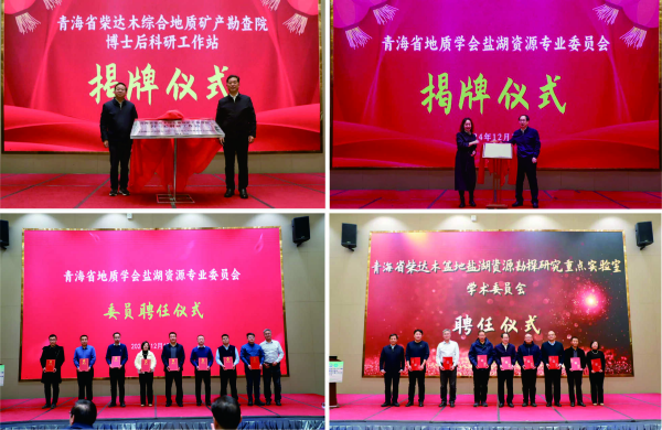 開幕式上,青海省自然資源廳黨組副書記、省地礦局黨委副書記、局長張啟元和中國科學(xué)院青海鹽湖研究所副所長(主持工作)鄭詩禮為“青海省柴達(dá)木綜合地質(zhì)礦產(chǎn)勘查院博士后科研工作站”揭牌。青海省地質(zhì)學(xué)會(huì)常務(wù)副理事長、省地礦局總工程師潘彤,青海鹽湖所黨委副書記、副所長、青海省地質(zhì)學(xué)會(huì)副理事長王建萍為“青海省地質(zhì)學(xué)會(huì)鹽湖資源專業(yè)委員會(huì)”揭牌。
