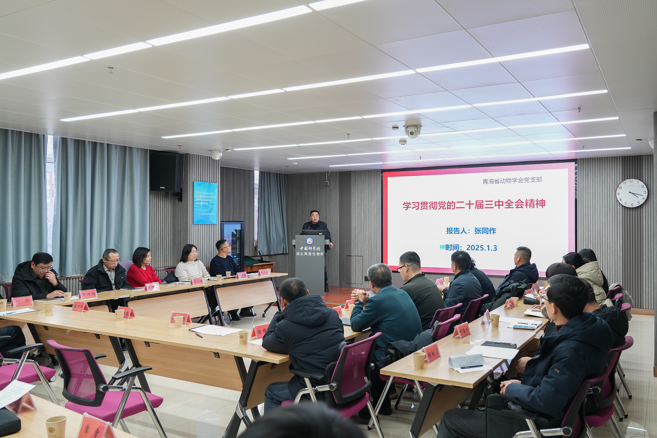 大會(huì)還圓滿完成了黨支部換屆工作。通過(guò)差額選舉產(chǎn)生了5名黨支部委員會(huì)委員,學(xué)會(huì)理事長(zhǎng)張同作再次當(dāng)選為黨支部書記。換屆完成后,張同作書記以《學(xué)習(xí)貫徹黨的二十屆三中全會(huì)精神解讀》為主題,為全體黨員和參會(huì)代表上了一堂內(nèi)容深刻的專題黨課,帶領(lǐng)大家共同學(xué)習(xí)了黨的二十屆三中全會(huì)精神,強(qiáng)調(diào)其深遠(yuǎn)的歷史意義,并指出學(xué)會(huì)全體黨員應(yīng)以此為指引,提高政治覺(jué)悟,肩負(fù)起時(shí)代使命,推動(dòng)青海省動(dòng)物學(xué)會(huì)在科研創(chuàng)新和生態(tài)保護(hù)方面實(shí)現(xiàn)更大的飛躍。