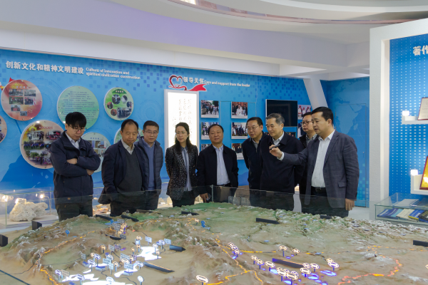 沈政昌一行參觀了青海鹽湖所科技成果展廳,對青海鹽湖所的歷史沿革、科研平臺、人才隊伍、科研成果、重大歷史貢獻和鹽湖資源開發(fā)利用研究進展等情況進行了解。