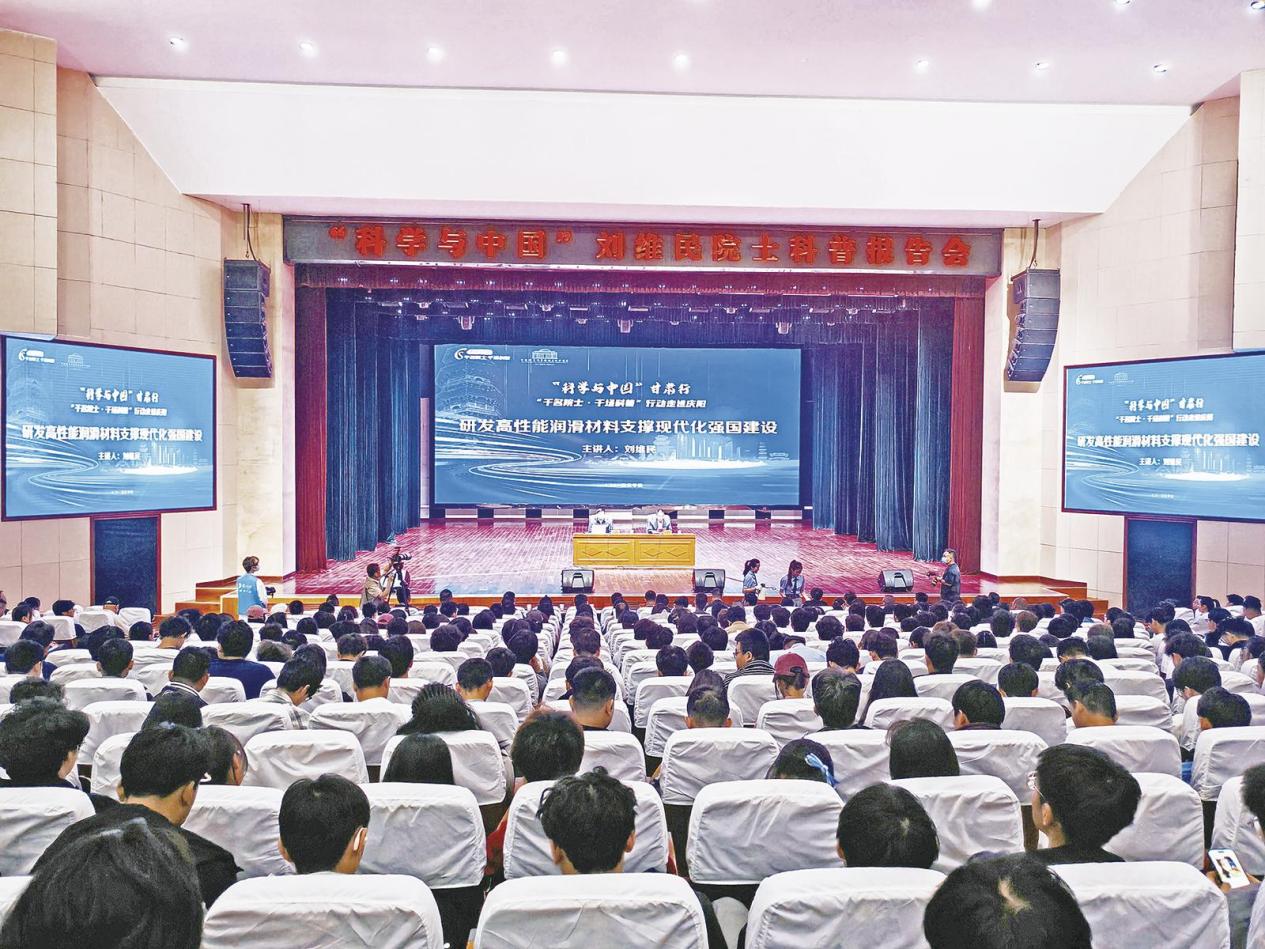 4月25日,“科學(xué)與中國(guó)”院士進(jìn)高校科普?qǐng)?bào)告會(huì)在隴東學(xué)院舉行,中國(guó)科學(xué)院院士、中國(guó)科學(xué)院蘭州化學(xué)物理研究所劉維民研究員作專題報(bào)告。隴東學(xué)院相關(guān)負(fù)責(zé)人及師生代表、慶陽(yáng)職業(yè)技術(shù)學(xué)院師生代表共1000余人聆聽(tīng)了報(bào)告。