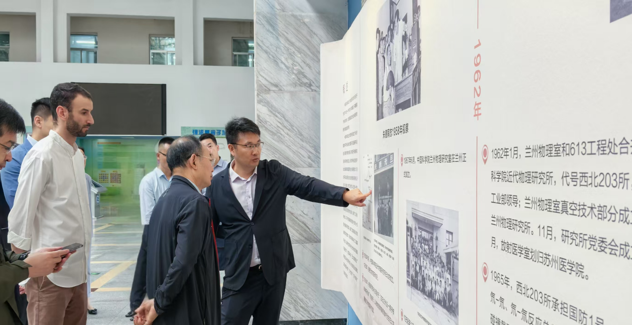 胡正國對聶生奎一行的到訪表示熱烈歡迎,并由衷感謝人社部外專司長期以來對研究所國際交流工作的大力支持。在國家實驗室展廳,胡正國系統(tǒng)介紹了研究所的發(fā)展歷程、人才隊伍建設(shè)成果、重大科研產(chǎn)出以及基地的國際科技合作情況。期間,他特別講述了以楊澄中先生為代表的老一輩科學(xué)家扎根西部、矢志報國的感人事跡,展現(xiàn)了近代物理所傳承科學(xué)家精神、勇攀科技高峰的堅定信念。