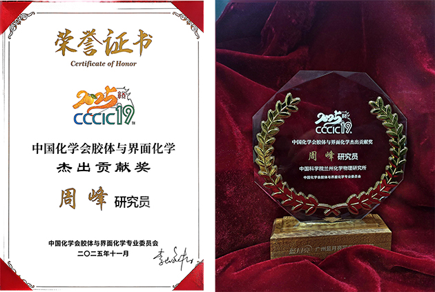 蘭州化物所周峰研究員榮獲中國化學(xué)會膠體與界面化學(xué)杰出貢獻獎