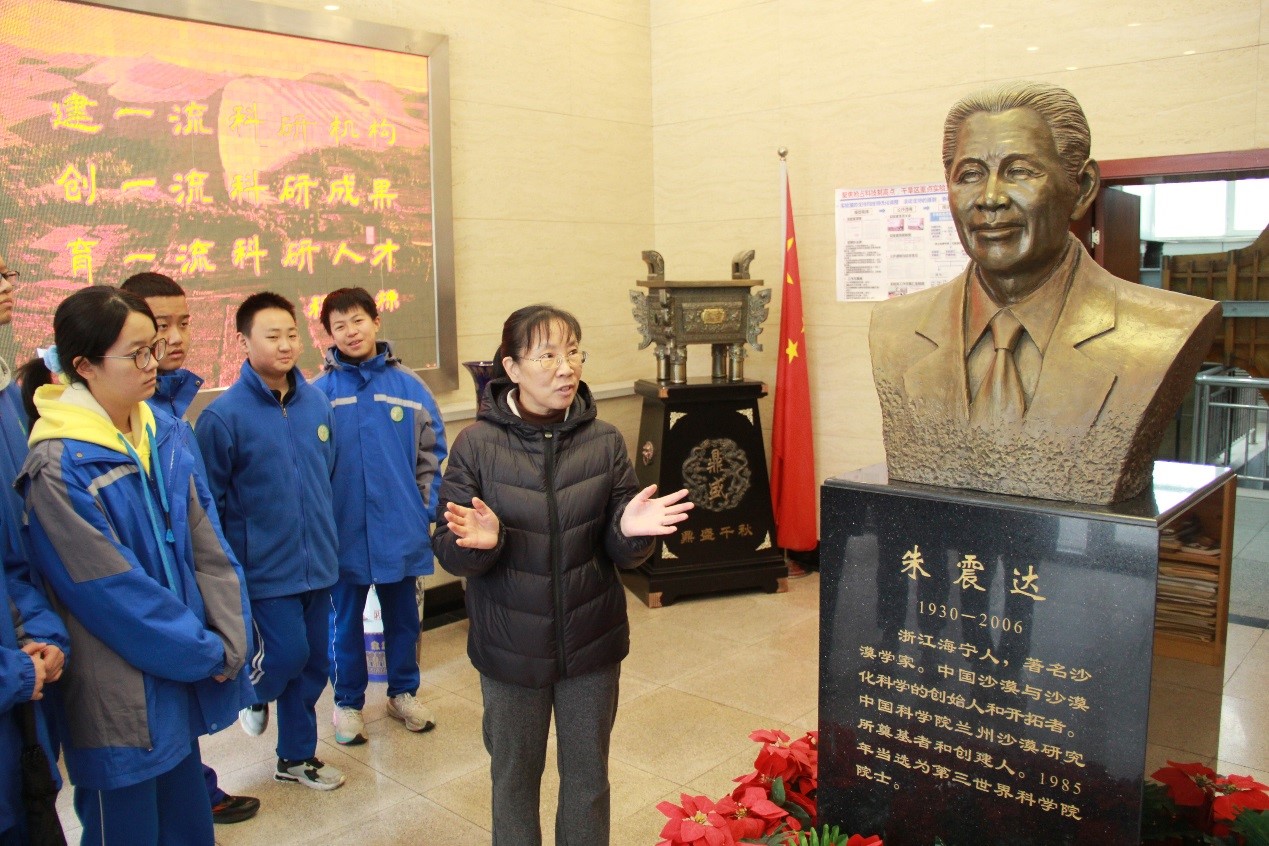 活動邀請了蘭州市200余名中學(xué)生走進(jìn)西北研究院。在冰凍圈科學(xué)與凍土工程全國重點實驗室,展靜高級工程師介紹了冰凍圈科學(xué)的重要前沿成果、凍土在國家重大工程中的關(guān)鍵地位等,全面展示了全國重點實驗室的發(fā)展歷程和科研成果。在干旱區(qū)生態(tài)安全與可持續(xù)發(fā)展全國重點實驗室,李芳和李宏高級工程師介紹了我國第一代木質(zhì)風(fēng)沙環(huán)境風(fēng)洞,其模擬風(fēng)沙運動的功能為我國工程建設(shè)提供了重要理論依據(jù)??萍紕?chuàng)新館中,講解人員介紹了西北研究院的歷史沿革、成果貢獻(xiàn)等,并結(jié)合多個沙盤模型,展示了西北研究院在國家重大戰(zhàn)略需求中作出的突出貢獻(xiàn)。