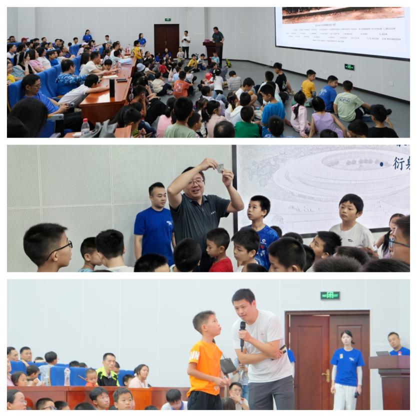 活動形式豐富多樣,科普展廳設有強流重離子加速器裝置(HIAF)和加速器驅動嬗變研究裝置(CiADS)的沙盤模型,科研人員為現場公眾詳細講解這些國家重大科技基礎設施的進展。在創(chuàng)新展區(qū),展示了超緊湊旋轉束重離子治療系統(tǒng)和中國首臺碳離子治療系統(tǒng)等模型,四極磁鐵、超導腔等加速器實物設備也吸引了不少關注??破請蟾姝h(huán)節(jié)中,中國科學技術大學的謝治助理研究員作了題為《追光逐日,迎接未來》的報告,介紹同步輻射領域的前沿知識;中國科學院近代物理研究所的藍江山副研究員則以《探索微觀物質世界的奧秘》為題,帶領聽眾探索粒子物理的奧秘,現場引發(fā)了熱烈提問?;芋w驗是本次活動的亮點。在實驗秀中,展示了高溫超導磁懸浮和核孔膜超黑材料等實驗演示;在“粒子特工訓練基地”,孩子們通過游戲模擬重離子在加速器中的運動,深入理解其工作原理,特邀惠州學院附屬學校學生擔任該項活動特別講解員,通過。此外,創(chuàng)工坊里,孩子們在老師的指導下參與科學制作,激發(fā)了他們對科學的熱情。